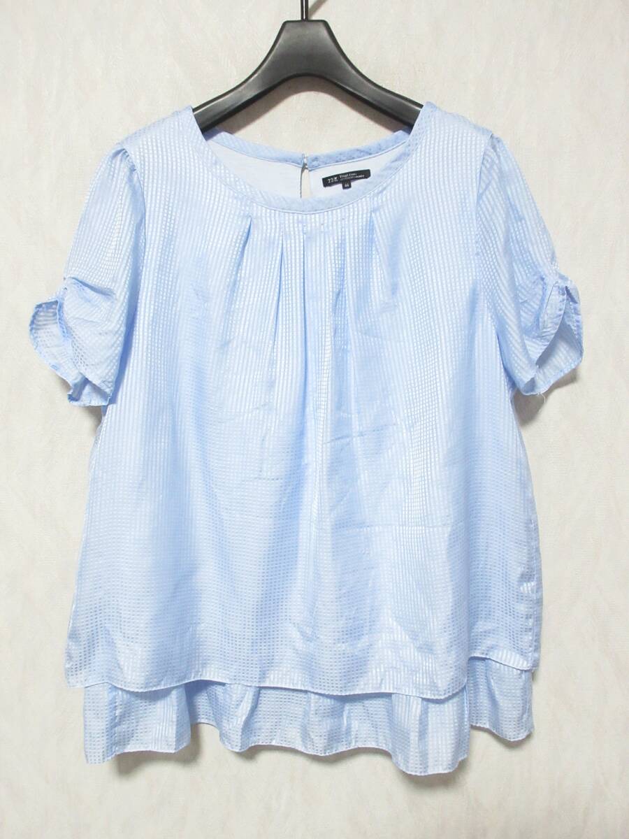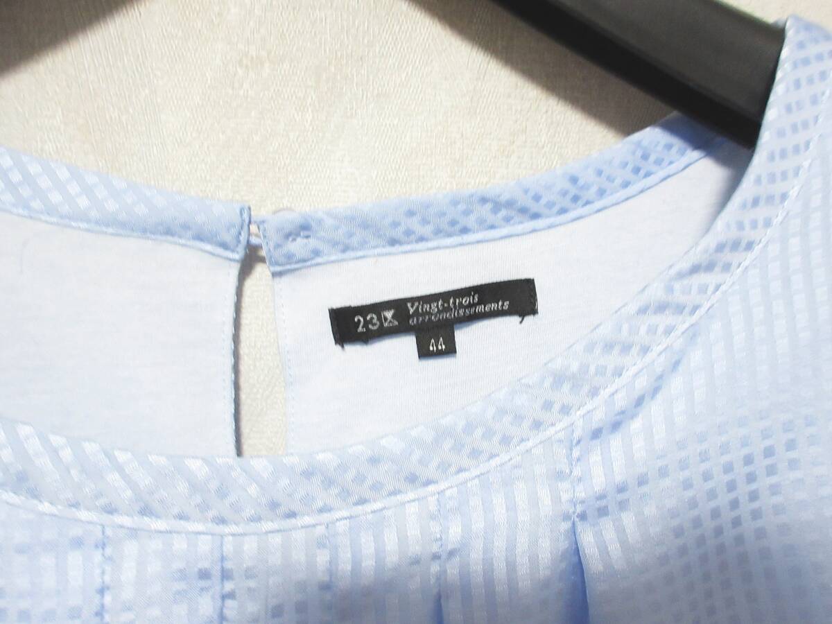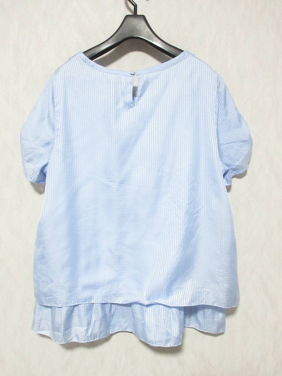 23区 オンワード樫山 チェック プルオーバー ブラウス レディース 44 大きいサイズ ライトブルー yg7407