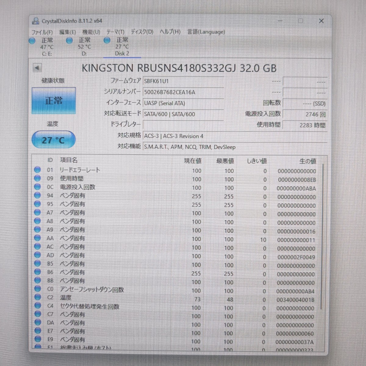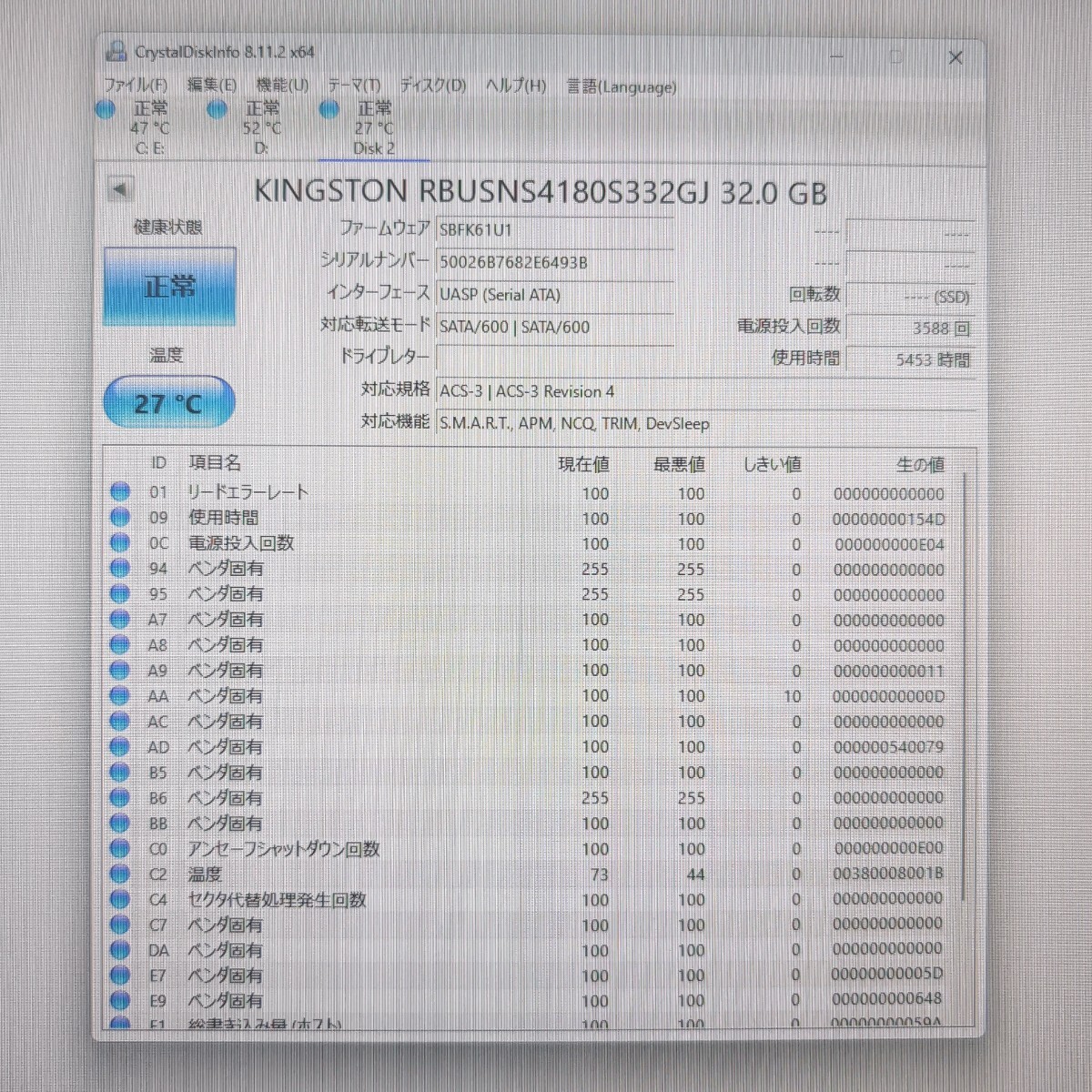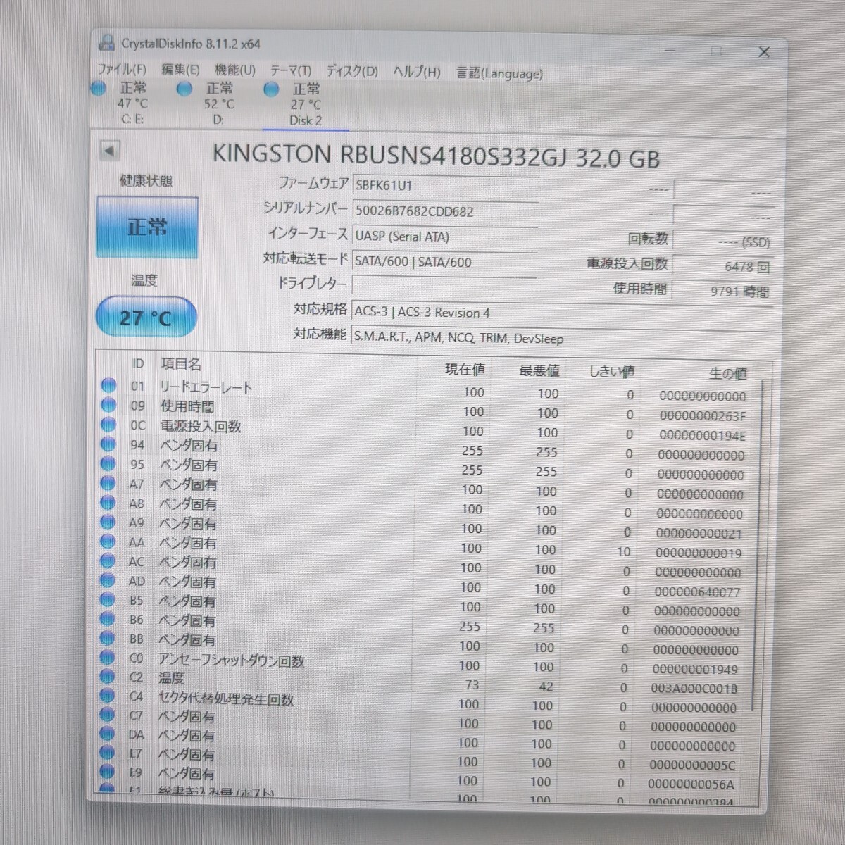 | 注意事項 | ■配送業者のご指定は契約上、承ることが出来ません。 ■土日はお休みを頂いており、週明けでの対応となります。 ■まとめて取引にご承諾頂けない場合、単品での発送となりますのでご注意ください。 ■保証類は設けておりません。返品不可のお品物です。 ■CrystalDiskInfoはあくまで目安であり、快適な動作を保証するソフトではございません。 ■このページに記載がない不良は保証外となります。 ■商品の使用方法などの電話・サポートは一切致しかねます。 ■梱包、清掃は簡易となります。 ■あくまでも中古品ですのでご了承いただけますようお願い申し上げます。 ■梱包済み商品となりますので、同梱を承ることができません。 以上、よくお読みになって質問・入札願います |