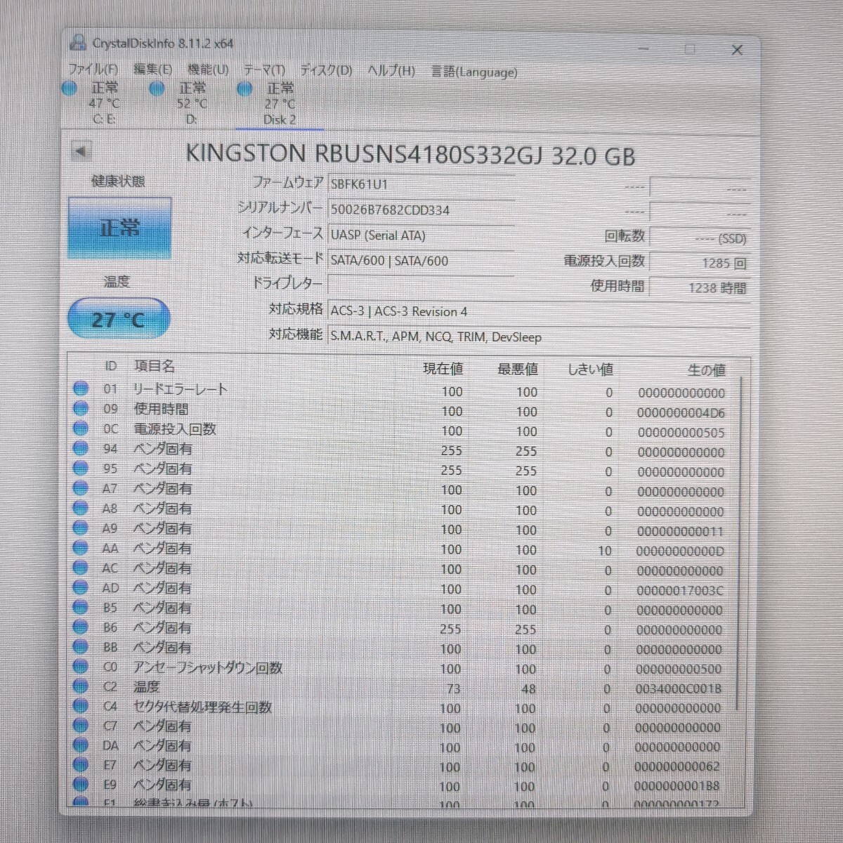 | 商品説明 | m.2 2242 SSD 8枚セットでの出品です。 CrystalDiskInfoにて表示されている健康状態につきましては、出品時現在の時点での状態です。 CrystalDiskInfoが示す健康状態はあくまで目安であり、快適な動作を保証するソフトではございません。 出品作業にあたり「電源投入回数」や「使用時間」「その他のステータス値」に若干の相違が発生する場合があります。 これまで「健康状態が掲載地点と違っていた」等のクレームをいただいた事はありませんが、 ストレージの特質上、品物到着までに健康状態が変わる可能性があるかもしれないという事をご了承下さい。 その他の状態は画像よりご確認ください。 「データ消去」と「CrystalDiskInfo」による検査のみになります。 完動品かどうかまでのチェックは行っていません。 ご了承頂ける方のみのご入札とさせていただきます。 領域(パーティション)作成方法やフォーマット方法がわかる等、ある程度知識のある方でお願いします。 過去に「フォーマットが出来ない」「OSがうまくインストール出来ない」等で、 返品要望のご連絡をいただく事があり、ご返送いただいた後に当方で確認したところ品物自体には問題なく正常だったという事が度々ありました。 それらの理由からノークレームノーリターンノーサポートとさせていただいています。 そのかわりに1円スタートで出品させていただきます。 |