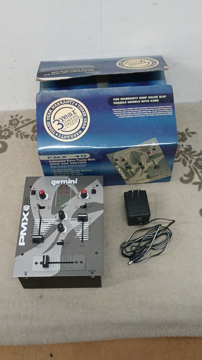 2チャンネル方式の音響ミキサーのようです。調べたところDJミキサーと呼ばれるものらしいですが具体的な仕様や詳細は不明となります。