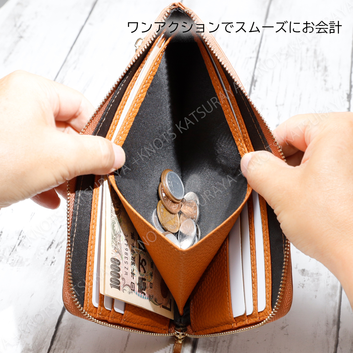 薄くワンアクションで大きく開く、使いやすいL字ファスナーの長財布です。薄くても大容量、バッグの中でかさばりません。柔らかく温かみのある本革を使用したシンプルなデザインは上品な印象です。大切な情報を守るスキミング防止機能付き。