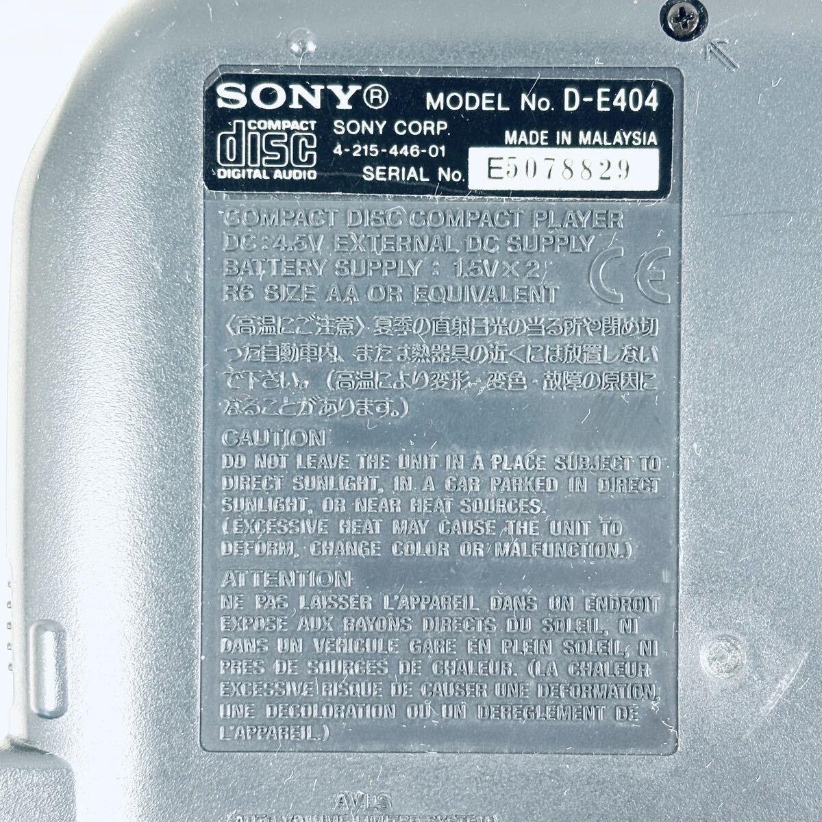 【動作確認済み】ソニー CDウォークマン D-E404 純正イヤホンリモコン付き