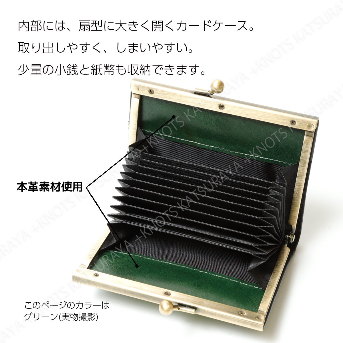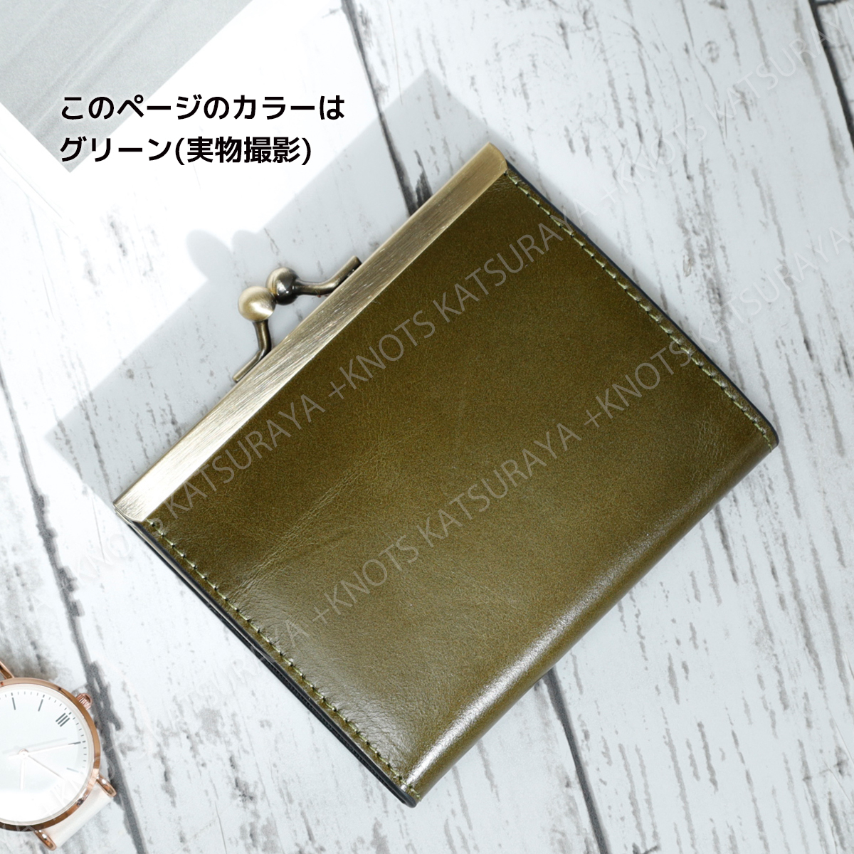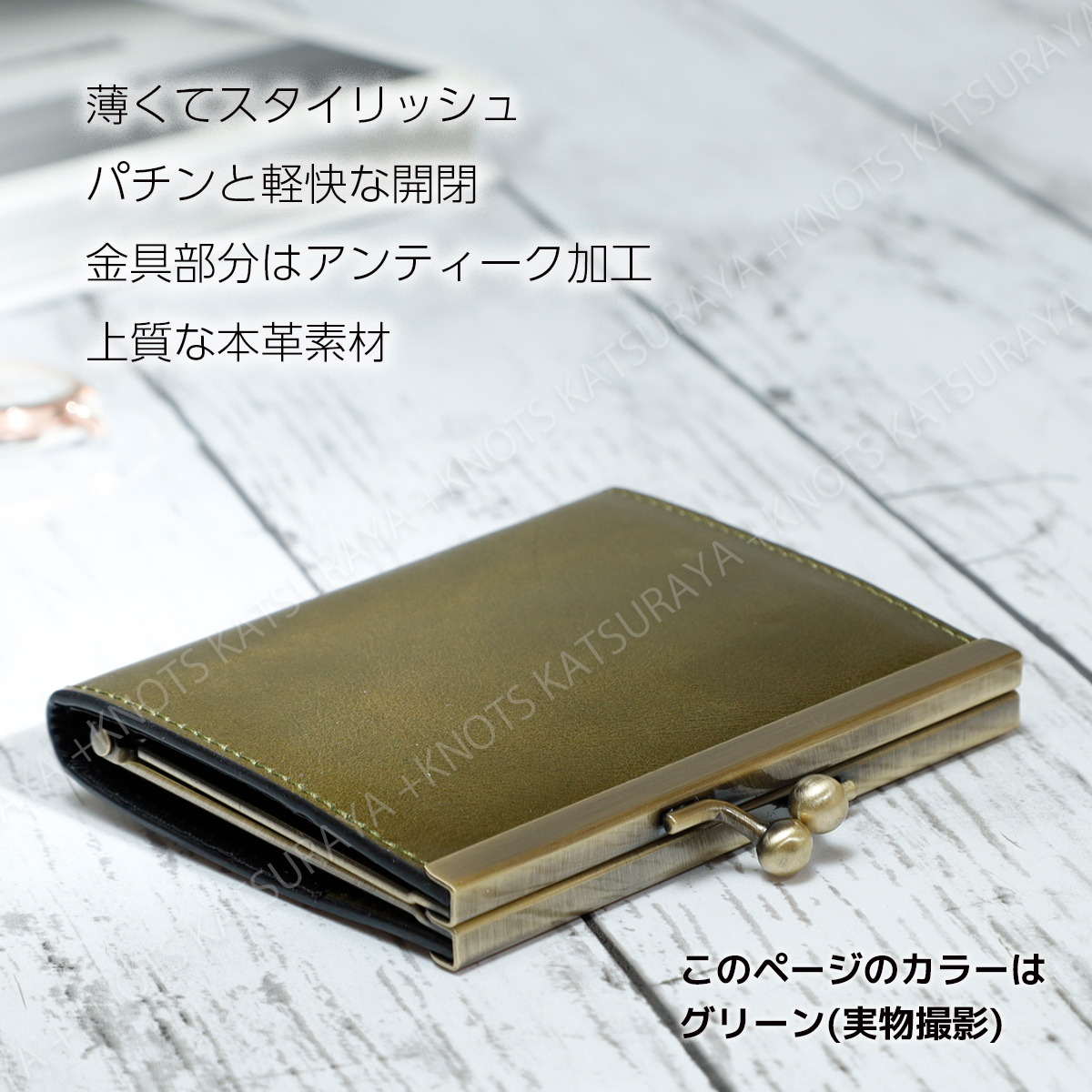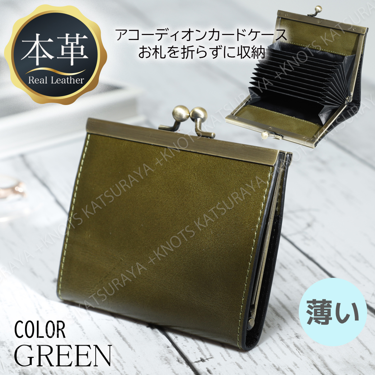本革 がま口 カードケース ミニ財布★グリーン緑色★お札折らない レディース がまぐち 薄い 小さい コンパクト スリム 小型 牛革 レザー