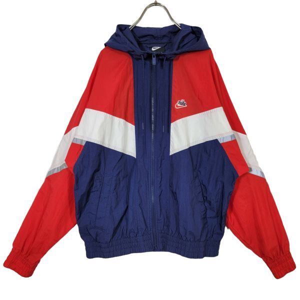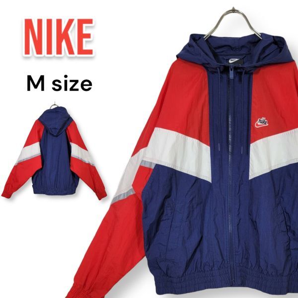 NIKE ナイキ ウィンドランナー Mサイズ 赤白紺 トリコカラー フードジャケット ナイロンパーカー ゆるダボ