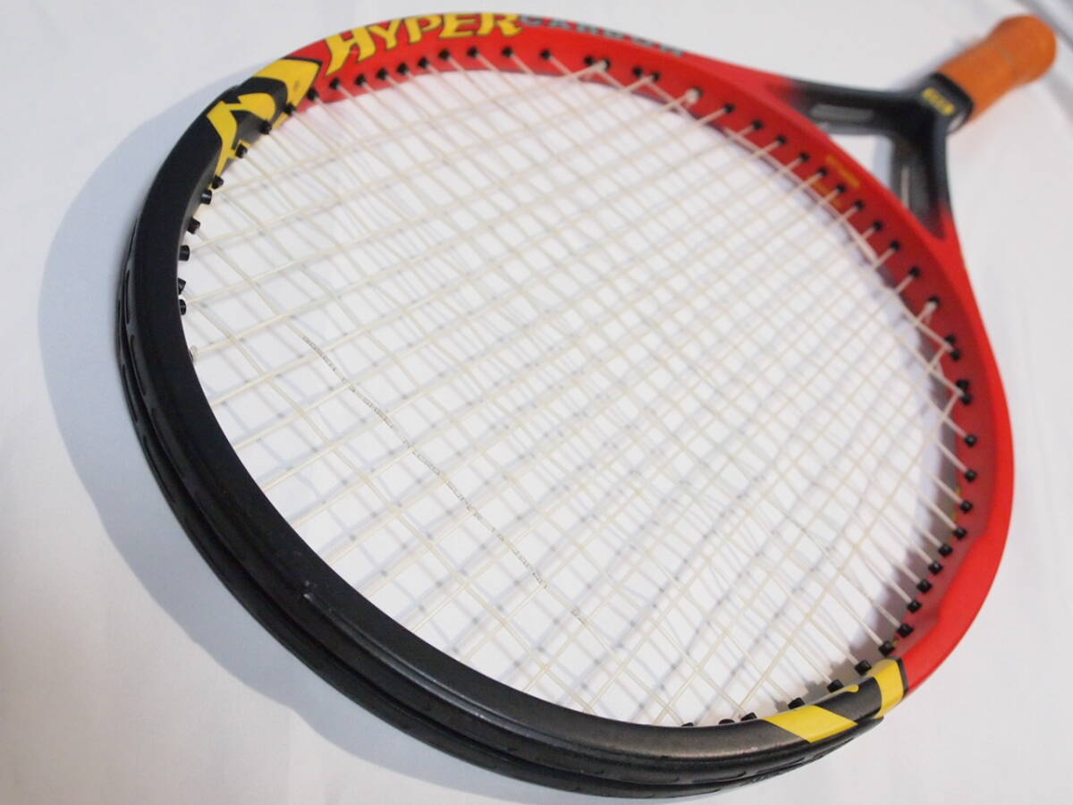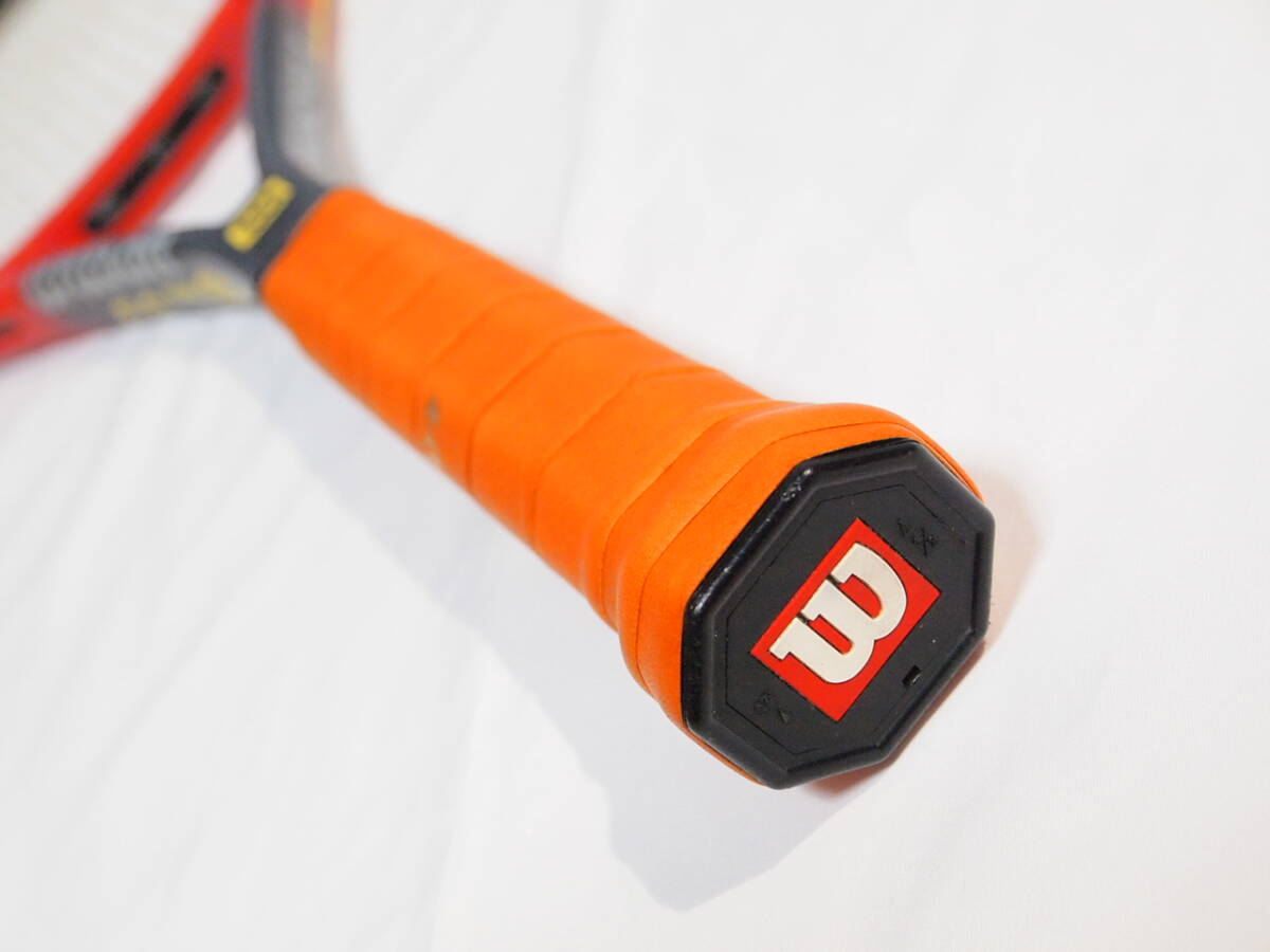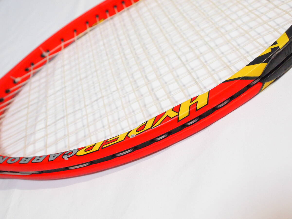 ガット込み約356g グリップサイズ4の表記ですがパレットが高密度のウレタンになっており外周11.1mm程度になっています