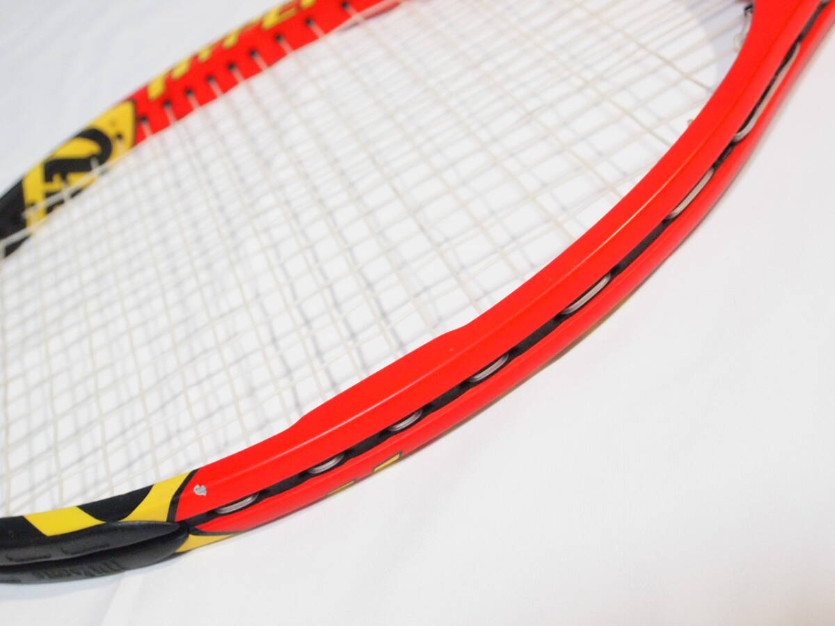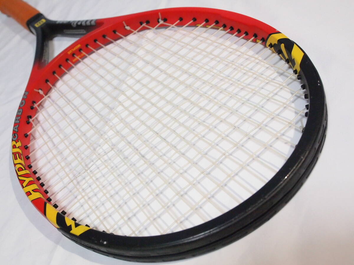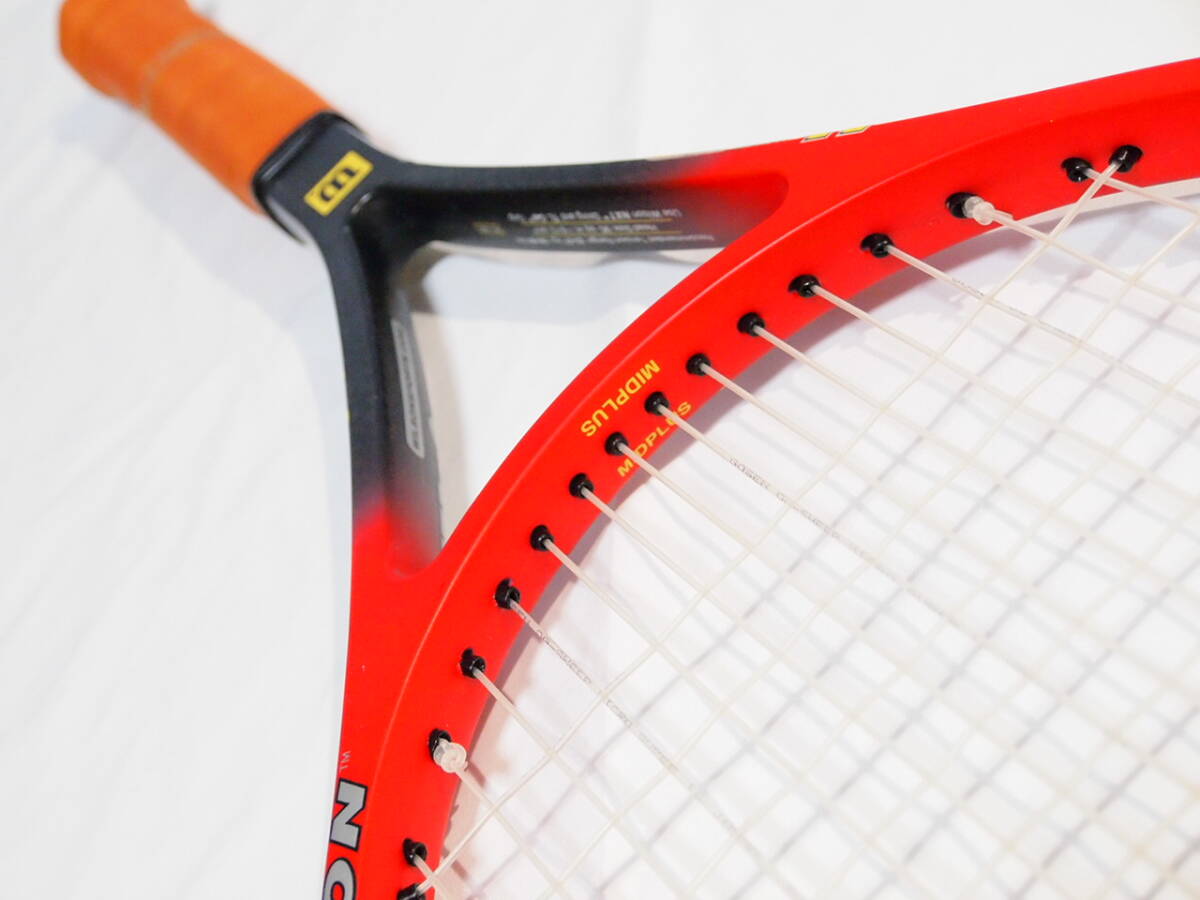 ガット込み約356g グリップサイズ4の表記ですがパレットが高密度のウレタンになっており外周11.1mm程度になっています
