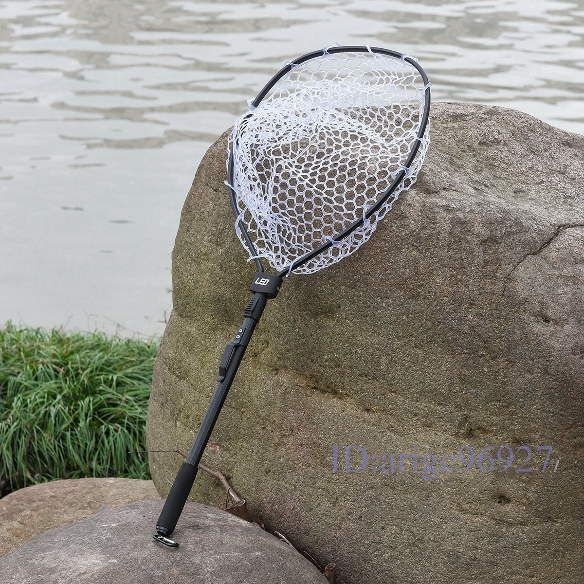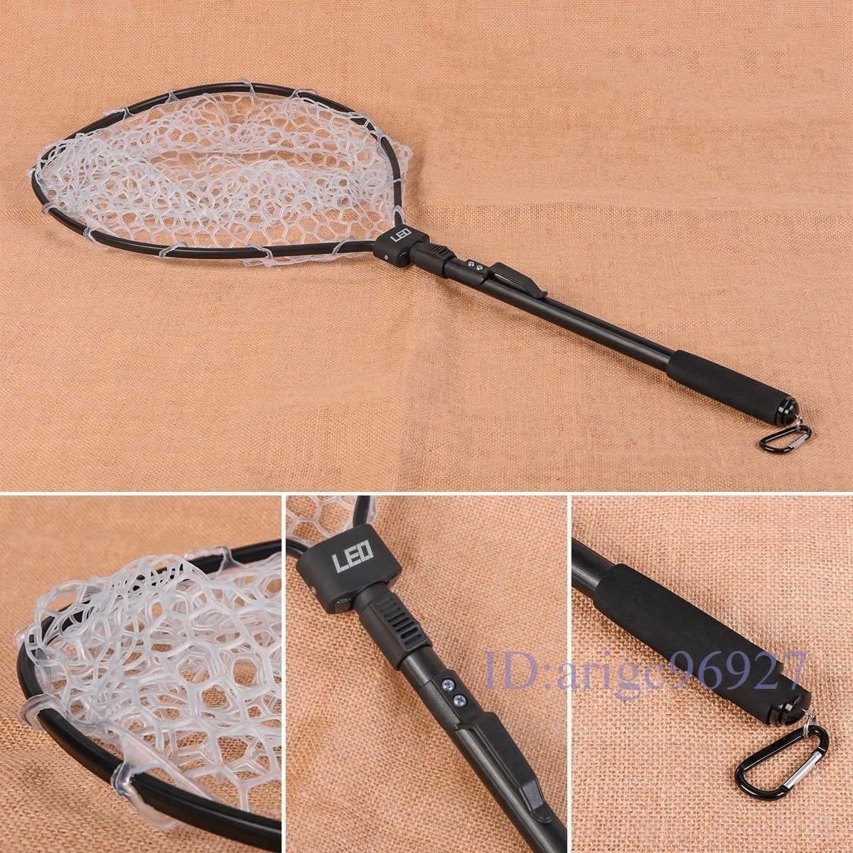E326★折り畳み ランディング ネット タモ網 玉網 軽量 ラバー バス釣り