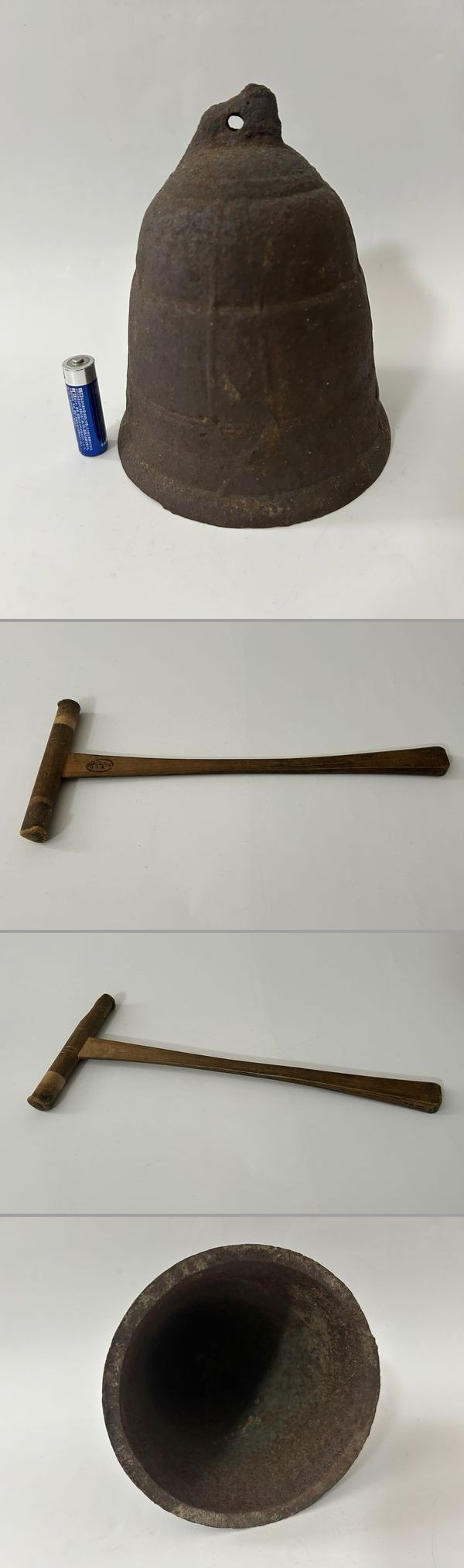 《火》古い鉄製 釣鐘 半鐘 木槌付き 高さ約16cm