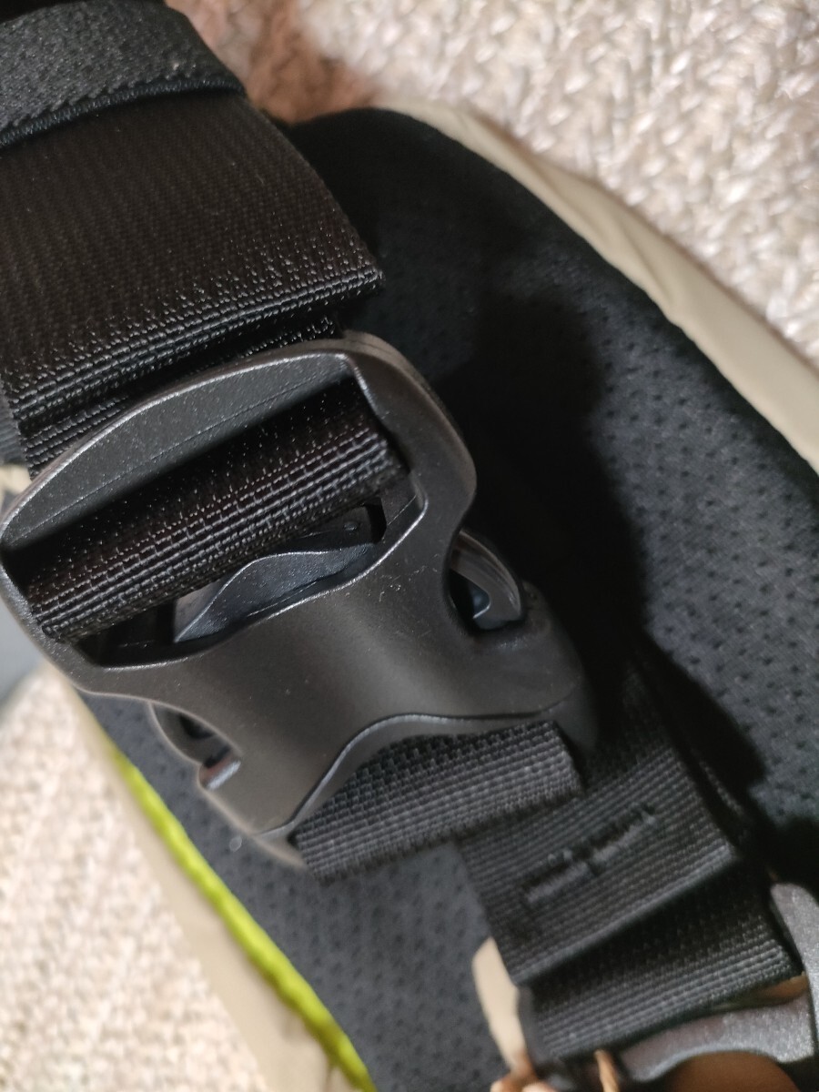 調整できる範囲がとにかく広く、余ったストラップも邪魔になりにくいゴムバンド付きになります。