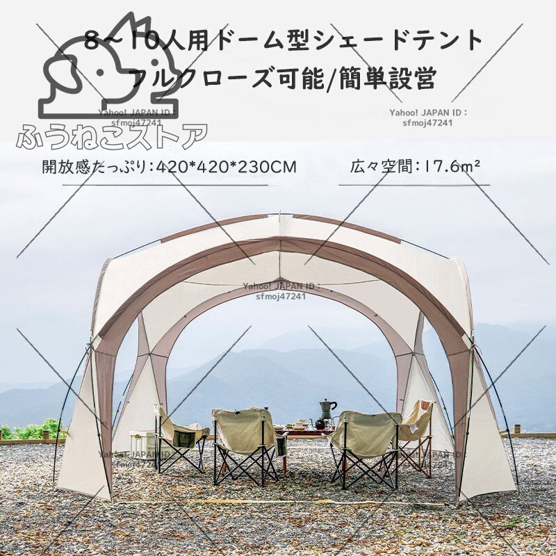 タープテント シェード ドーム型パーティーシェード ドームシェルター 天幕 イベント UVカット 防水軽量 サイドウォール付 収納袋 ベージュ