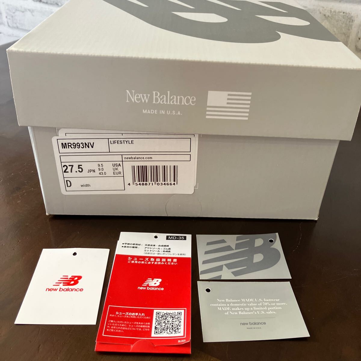 ニューバランス 993 27.5 MR993NV ネイビー 箱 タグ のみです。