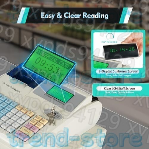 【幅広い用途】この電子レジスターシリーズは、幅広い用途、簡単な操作、考え抜かれた機能設計、およびさまざまなオプションの周辺アクセサリを備えており、中小企業、小売店、スーパーマーケット、食料品店、コンビニエンスストアに適しています。小売業やケータリング産業に適しています。