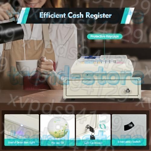 レジスター 業務用 小型 インボイス、48キーLEDディスプレイ、取り外し可能なキャッシュトレイ付き電子レジ