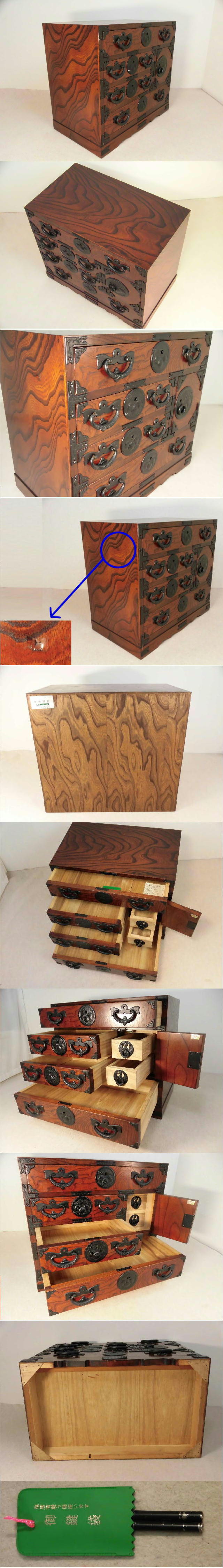 【 現代物 民芸家具 極小タンス 時代箪笥 船箪笥 小箪笥 鍵付き 重さ 約16kg 古民具 】検)千両箱 賽銭箱 銭箱 時代金庫