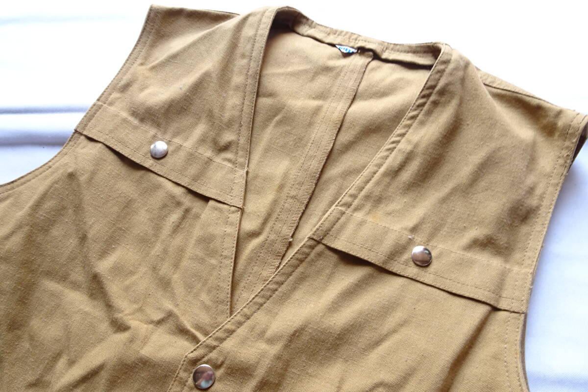 ELJOHN/エルジョン/ベスト/ジレ/帆布系素材/キャンバス生地/Vネック/スナップボタン/後腰ベルト/茶/ブラウン/Mサイズ(8/22R)