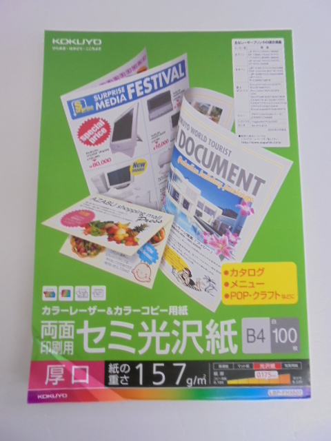 【KCM】□app-72★ワケあり★KOKUYO/コクヨ カラーレーザー&カラーコピー用紙 セミ光沢紙 厚口 B4 白 100枚 LBP-FH3800