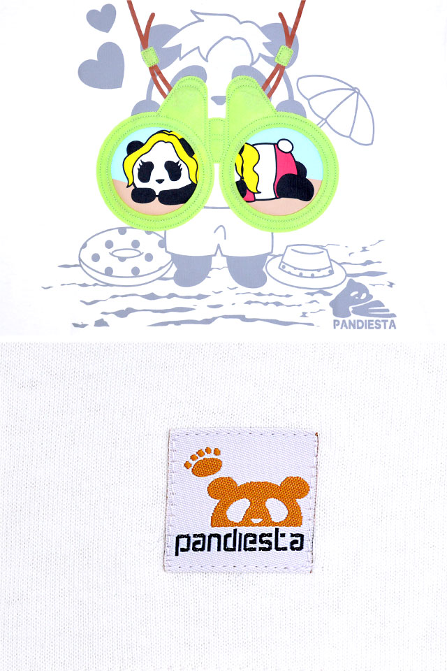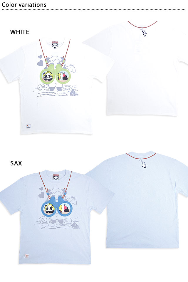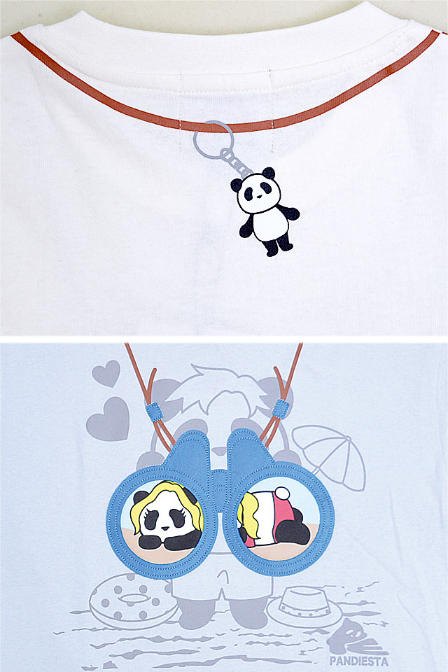 和柄ブランド【錦】の姉妹ブランドとして誕生した、お茶目なパンダをモチーフとした【PANDIESTA JAPAN】より「のぞき見パンダ半袖Tシャツ(554357)」のご紹介です。 毎日着ることを考え、品質はもちろん価格にもこだわったグラフィックプリントTシャツが今年も登場しました。 今回は夏がモチーフの清涼感溢れるデザイン。 フロントには砂浜でこっそりキュートなパンディエスタガールを覗き見するパンダをプリントしました。 双眼鏡の部分が別生地になった、立体感のあるギミックが特徴です。 首にかけたロープの後ろにはパンディエスタのチャームがぶら下がっているところもポイントです。 柔らかくて肌触りが気持ちよい天竺素材はシーンを選ばず、男女問わずオススメです。 | |||||||||||||||||||||||||