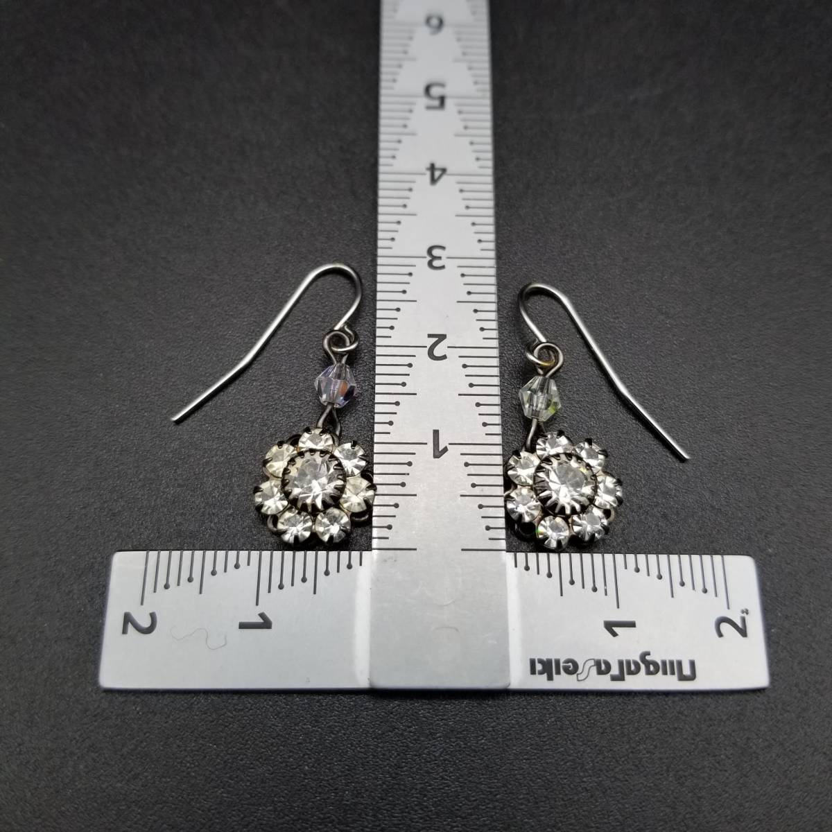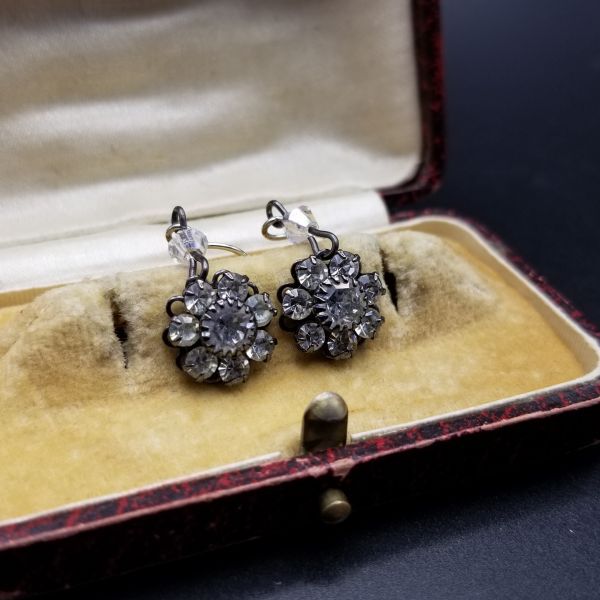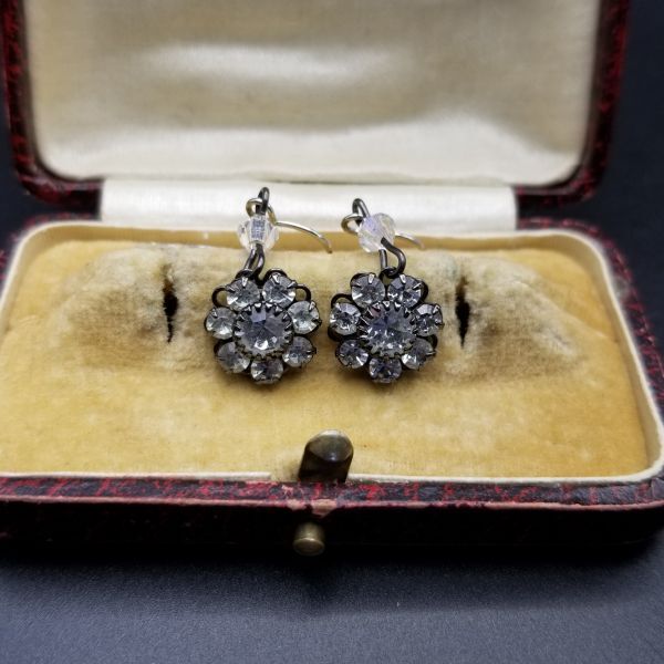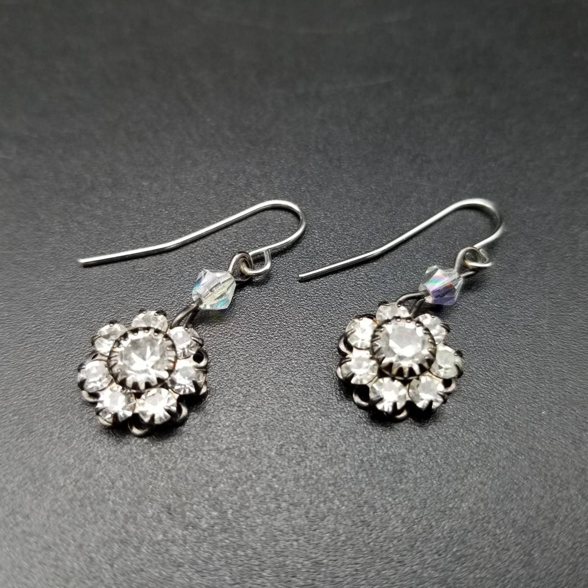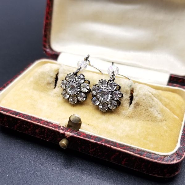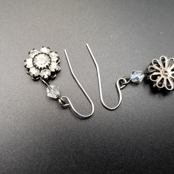 フラワー クリアストーン ヴィンテージ フックピアス フローラル ラインストーン 煌めき レトロキュート コスチュームジュエリー AJA②1