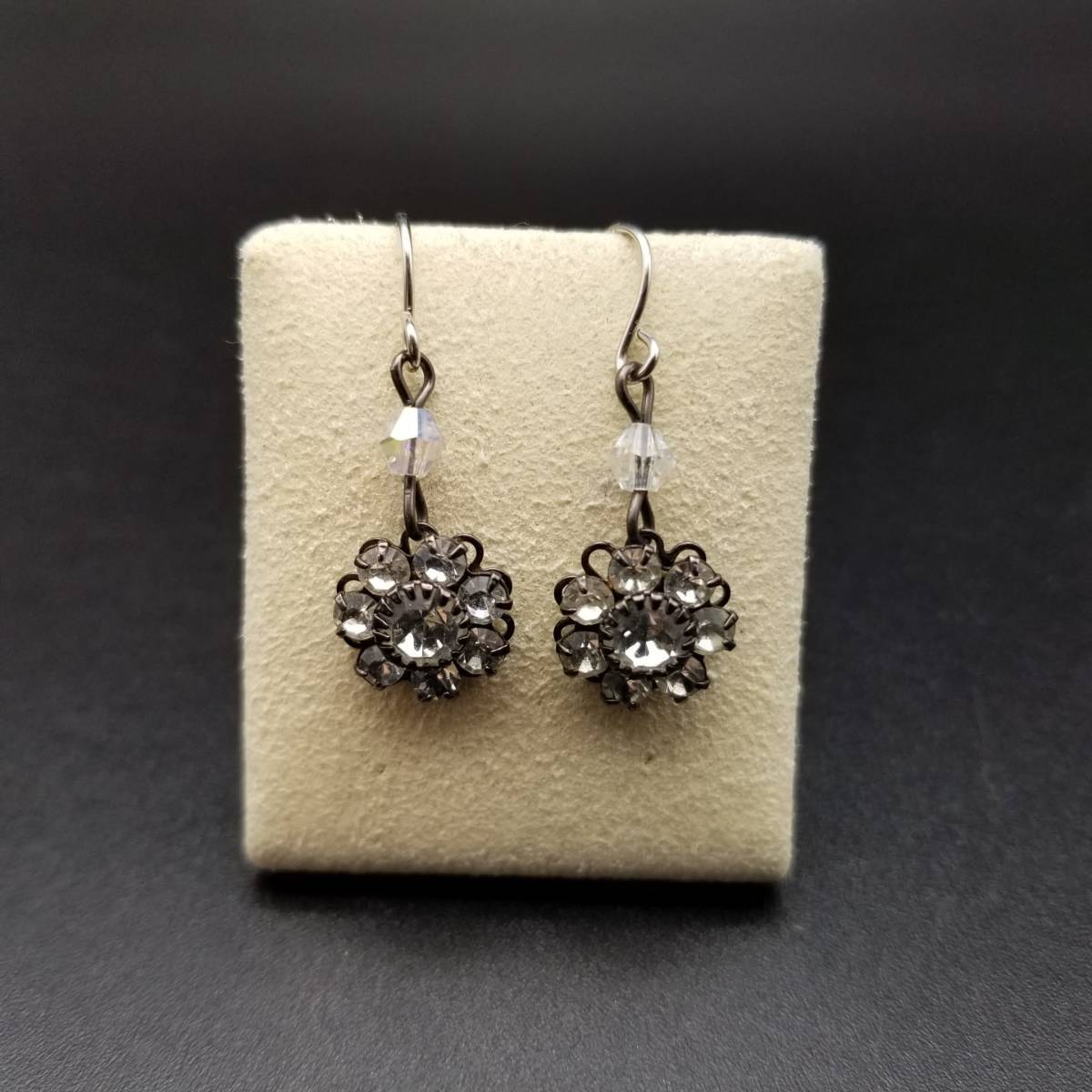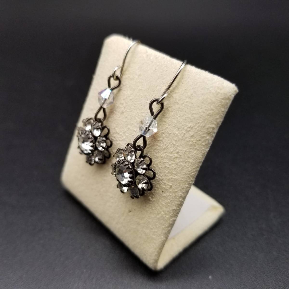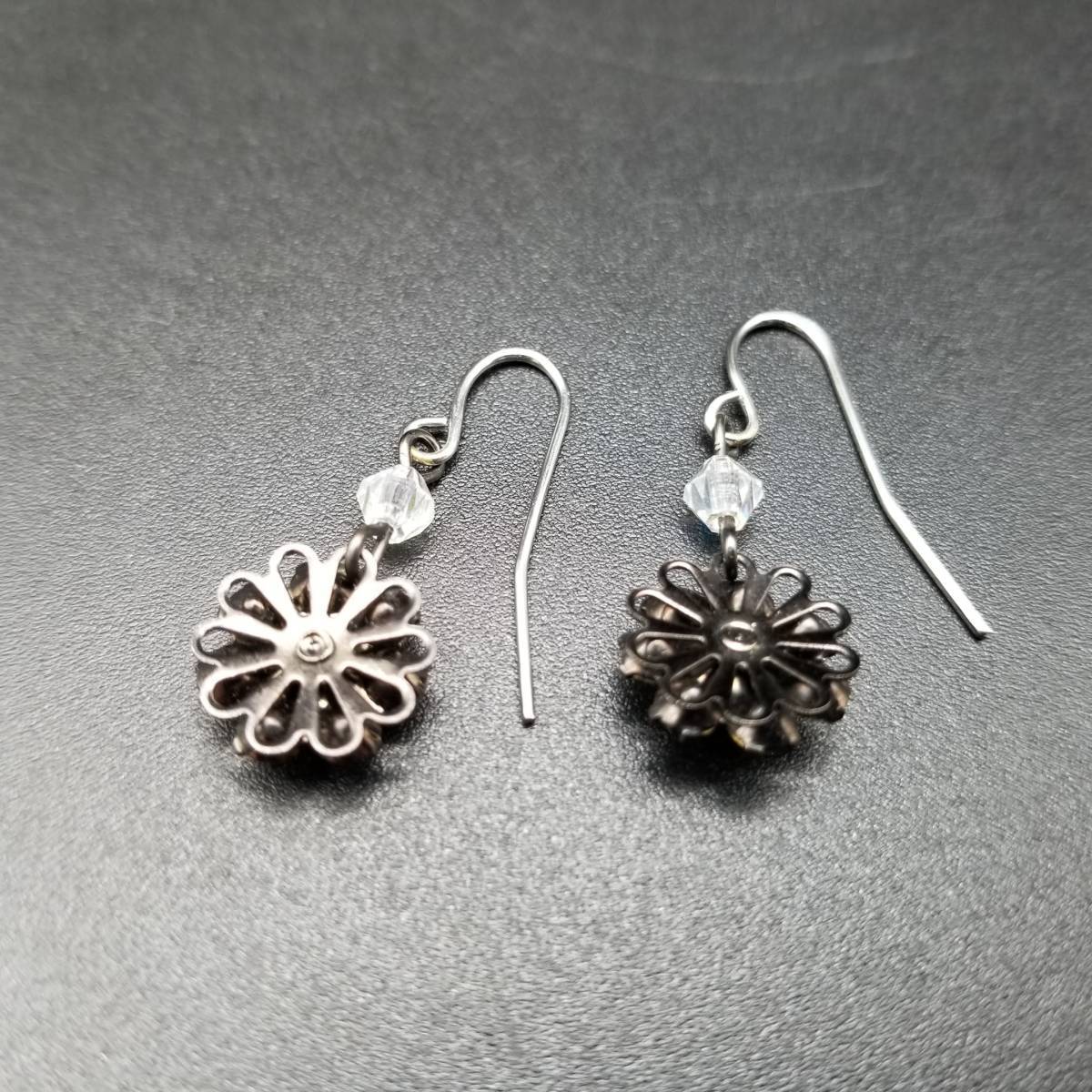 フラワー クリアストーン ヴィンテージ フックピアス フローラル ラインストーン 煌めき レトロキュート コスチュームジュエリー AJA②1