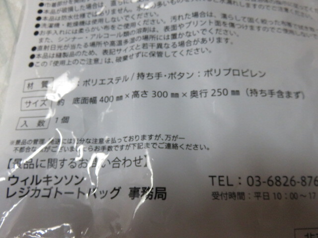 WILKINSON ウイルキンソン レジカゴトートバッグ トートバッグ 24本ケースが入る大容量トートバッグ 丈夫です 未開封 未使用 を出品します。