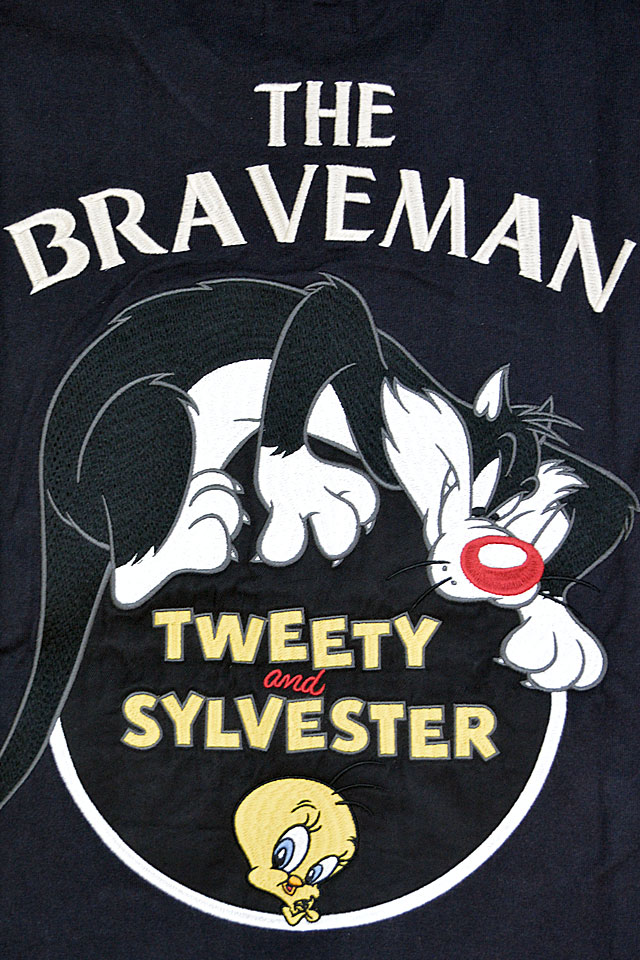 1920年代~40年代にアメリカでワークウェアを中心とした製品を世に送り出したブランド「The BRAVE-MAN」から「BR×LOONEYコラボ 天竺半袖Tシャツ(LTB-2407)」のご紹介です。 アメリカのワーナーブラザーズが製作するアニメーション【LOONEY TUNES】の人気キャラクターをモチーフにしました! 背中にはトゥイーティーを追い掛け回すシルベスターが描かれています。 フロント左胸にはトゥイーティーをワンポイントで刺繍。 左袖にはブランドロゴ入りの刺繍ワッペンを縫い付けました。 ボディーには、ややしっかりとした刺繍に負けない強さを持ったTシャツ生地を採用。 | |||||||||||||||||||||||||