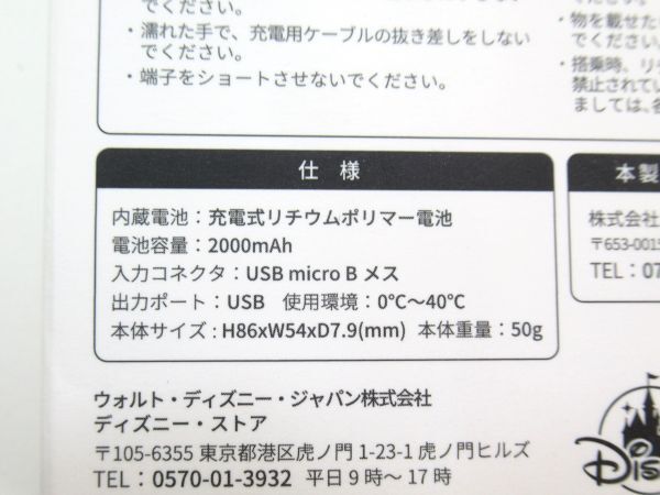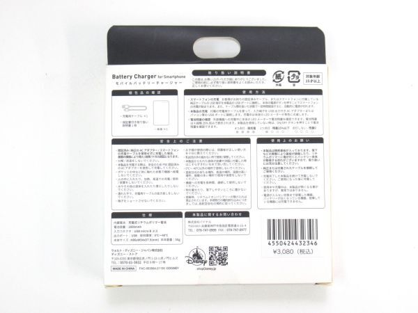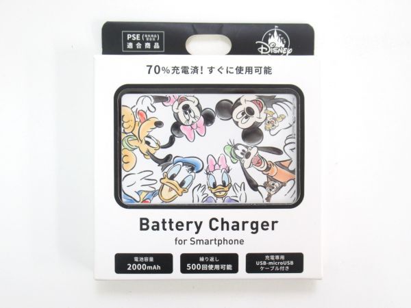 AC 10-9 未使用 ディズニーストア モバイルバッテリーチャージャー 2000mAh USBケーブル付 スマートフォン用 ミッキー ドナルド