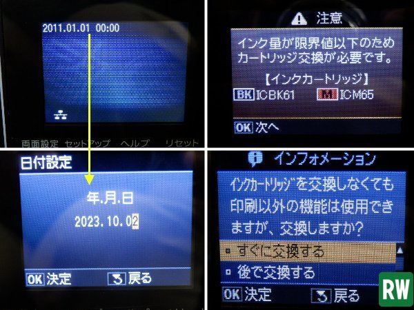 | 動作確認 | 済 インク切れで印刷が試せませんでしたので、確認したことは以下の通りです。 ・日付変更 ・スキャンしてスキャンしたデータをPCで確認 この商品について詳しいことがわかりませんので、その他は確認しておりません。 | |||||||||||||||||||||||||||||||||||||||||||||||||