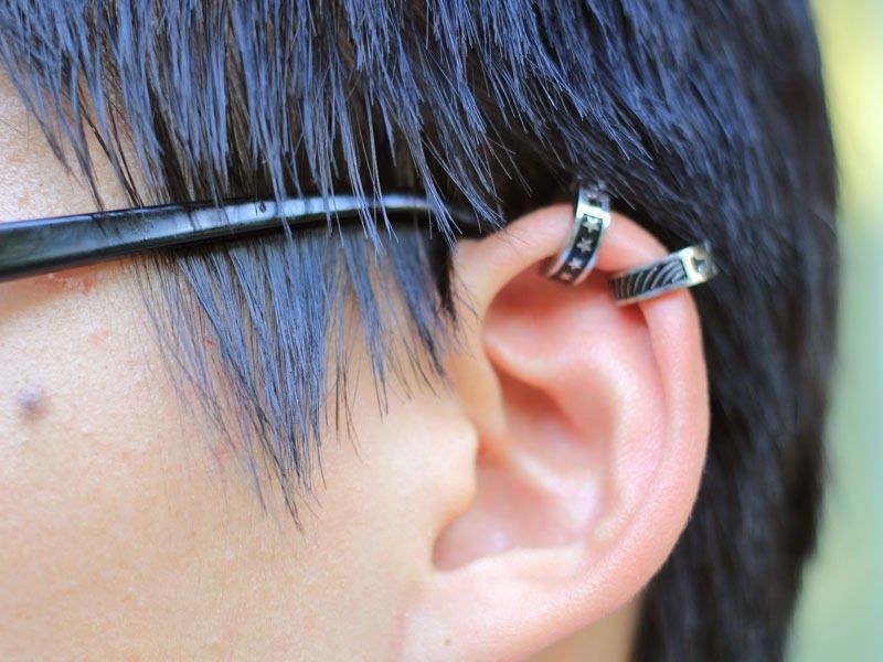 手で軽く曲げながら自分の耳に合わせる様にして、挟む部分は耳の側面だけでなく、上部や耳たぶに挟む方もおられます!装着する部位は好み次第!