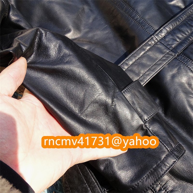 「81SHOP」品質保証 牛革 レザージャケット お洒落メンズコーデ トレンチコート ウール襟 ライダース 本革 XS~3XL