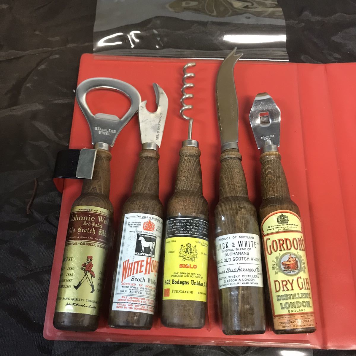 当時物 ホームバーセット 5pcsブックスタイル 栓抜き コルク抜き 缶切り バーナイフ 昭和レトロ アンティーク