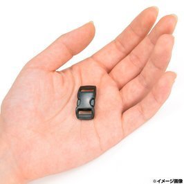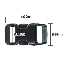 縦30mm×横15mmの小型バックル。幅約1cmまで対応しており、カバンのウェビングやパラコードブレスレット等に取り付けて使用することが出来ます。