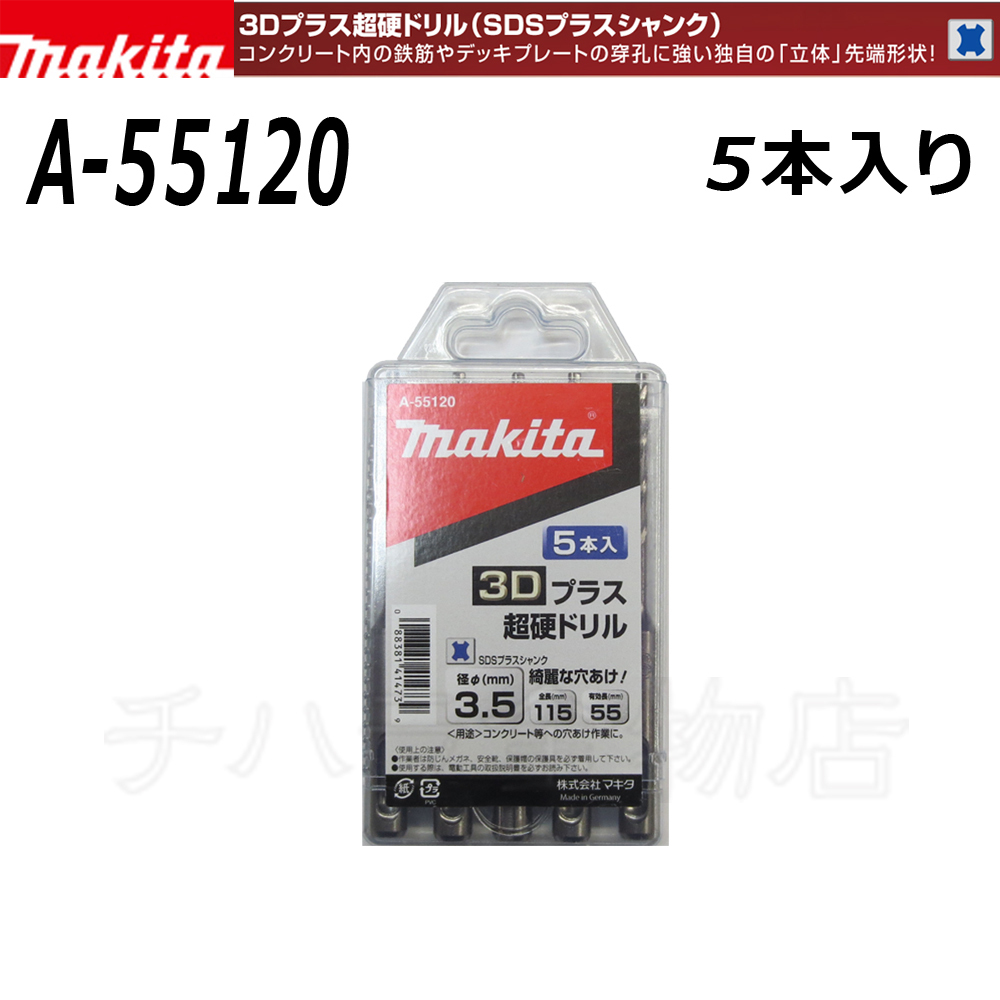 マキタ 3Dプラス超硬ドリル(SDSプラスシャンク) 5本入×2個セット A-55120【径3.5mm×全長115mm】