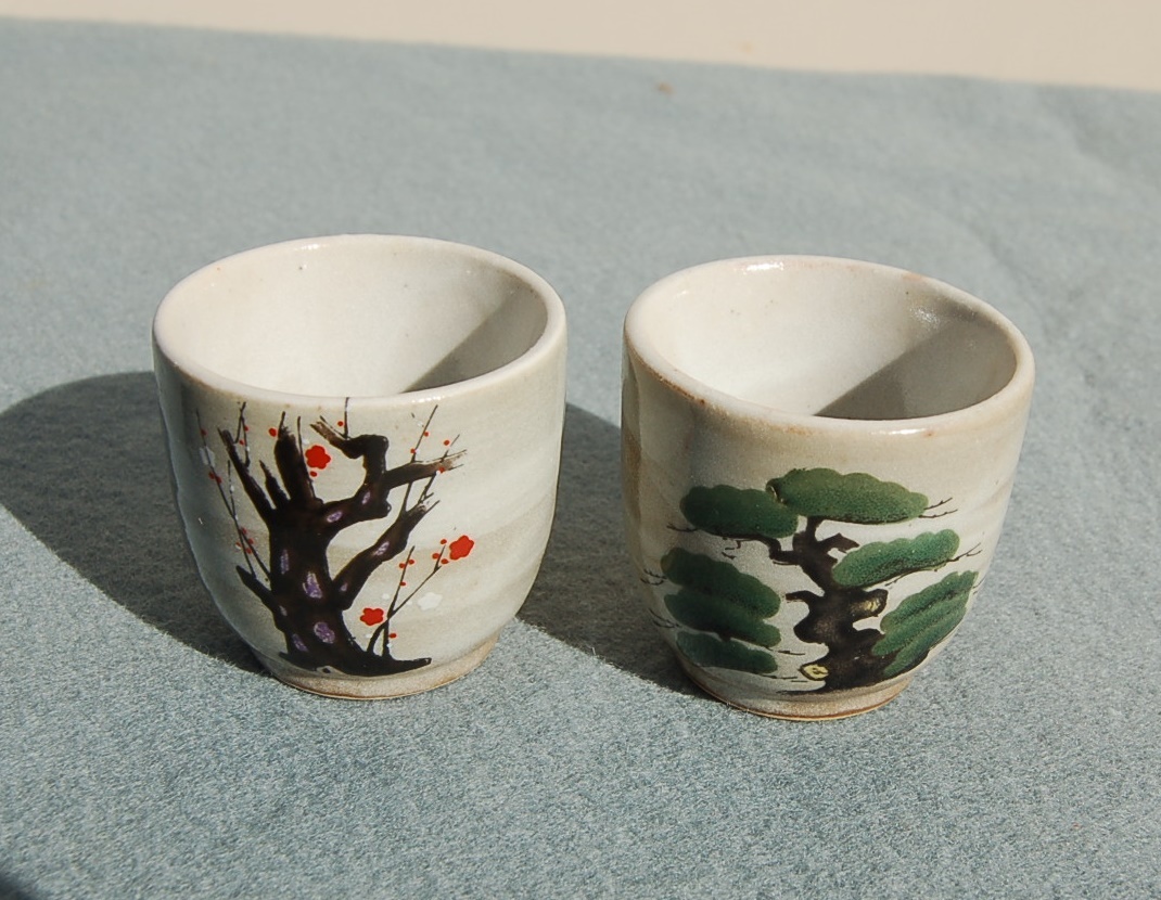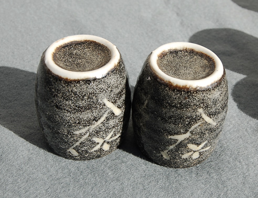 黒釉:直径4.4㎝高5㎝  松・梅:直径4.8㎝高4.6㎝