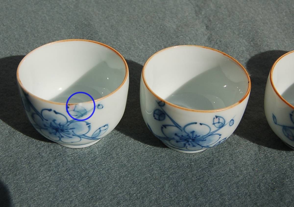 白磁 直径4.8㎝高3.2㎝ 1個微細な縁欠けが判明しました。(青丸)