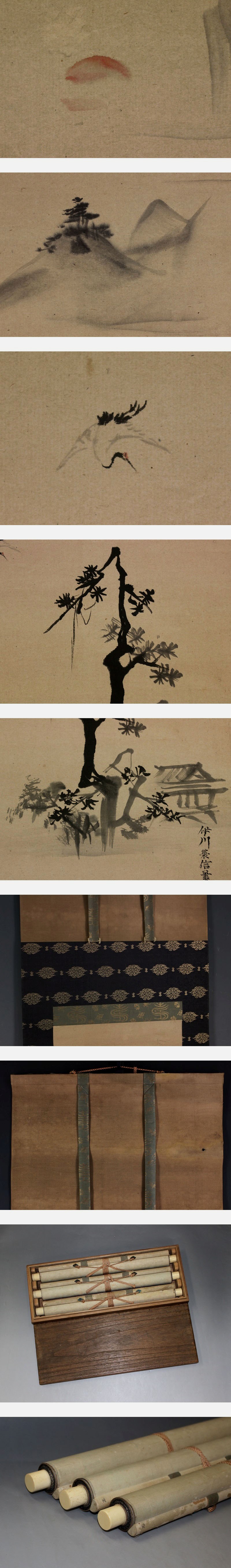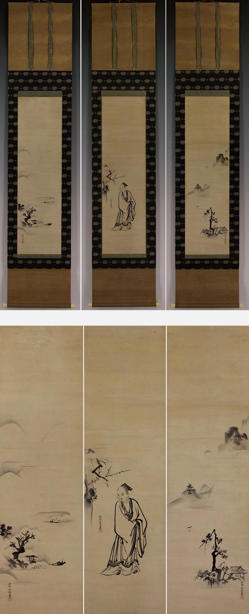 | №1903008【真作】狩野伊川院【三対幅・慶祝図】◆紙本◆合箱◆掛軸 | |