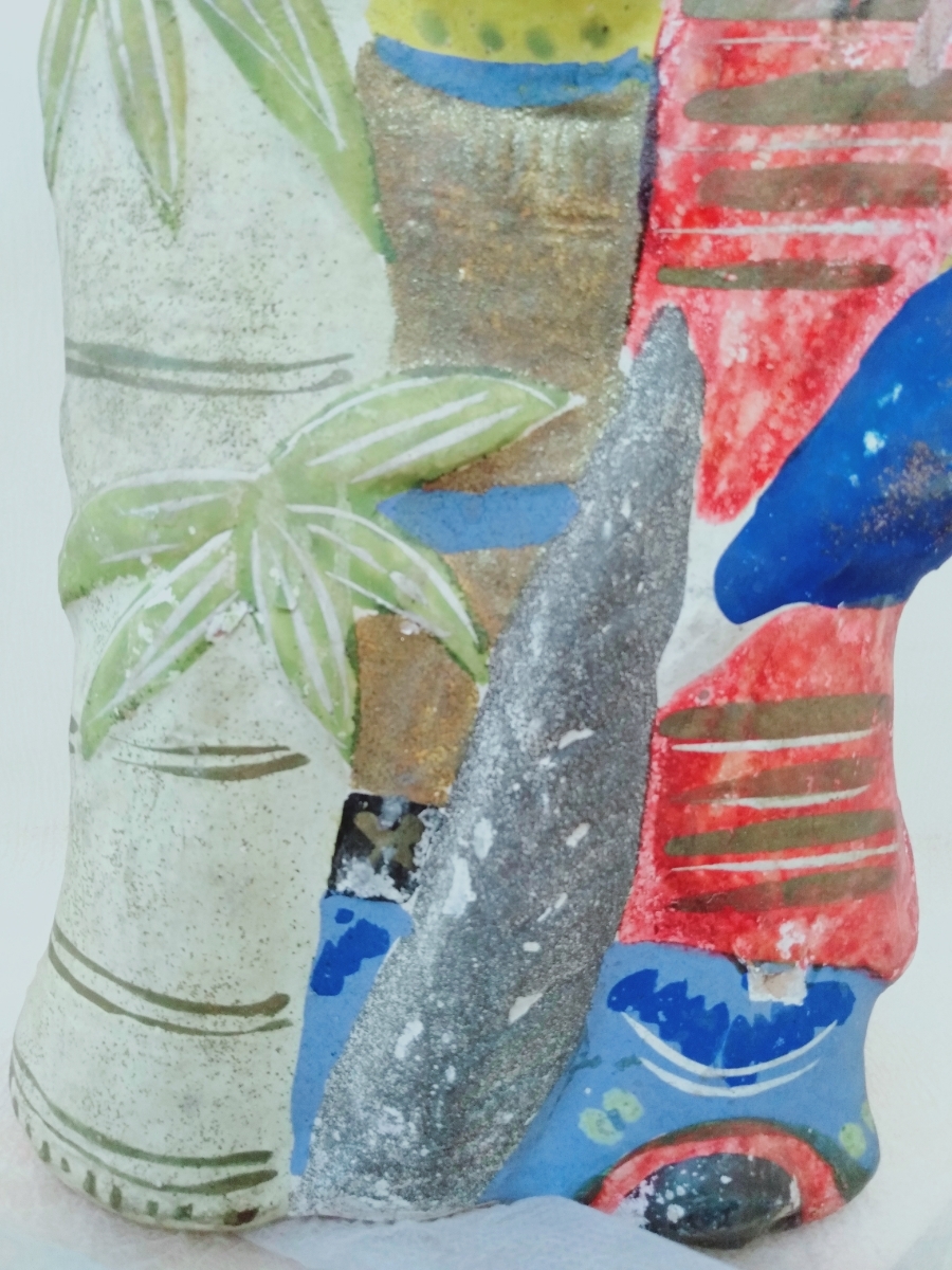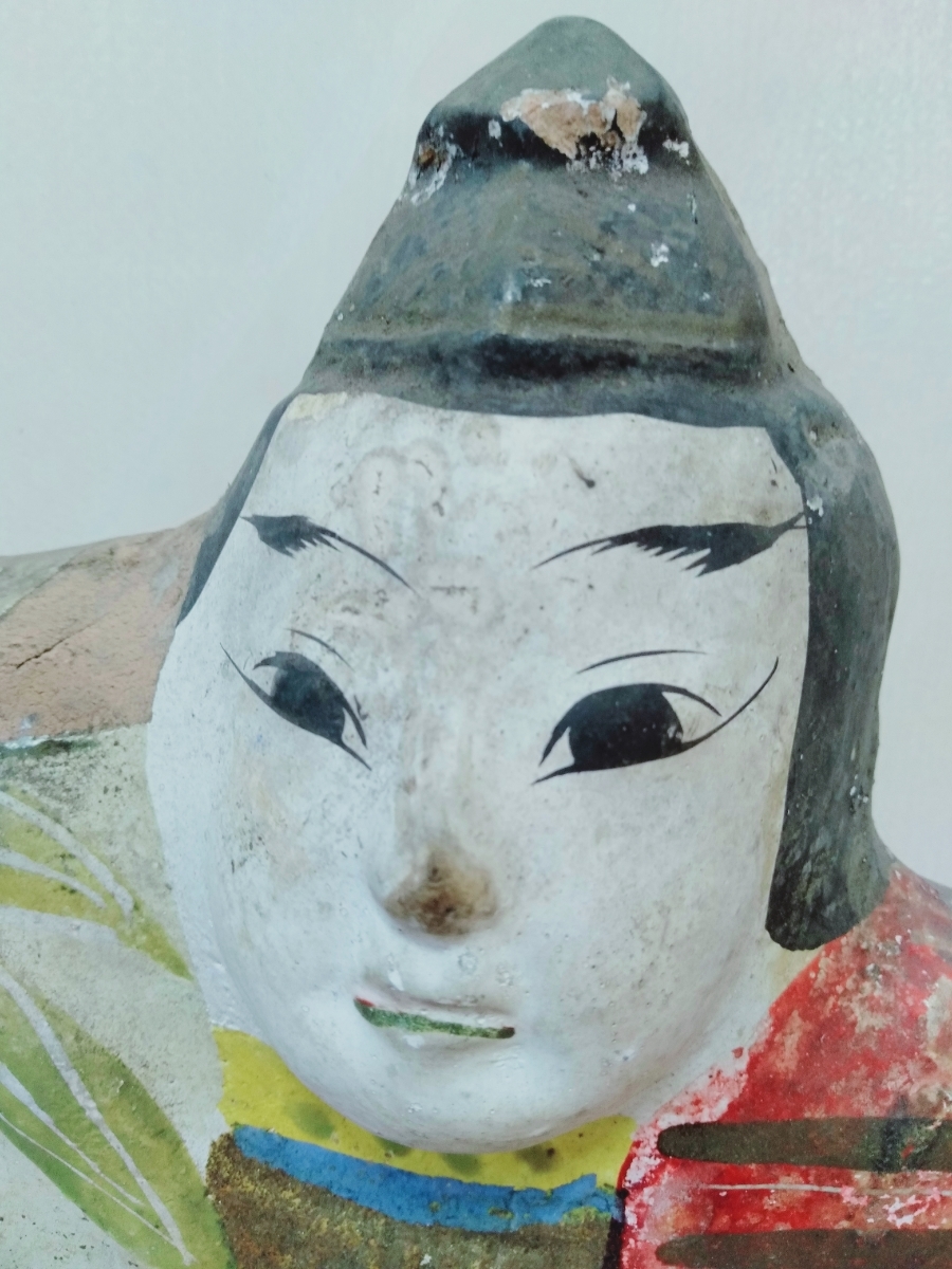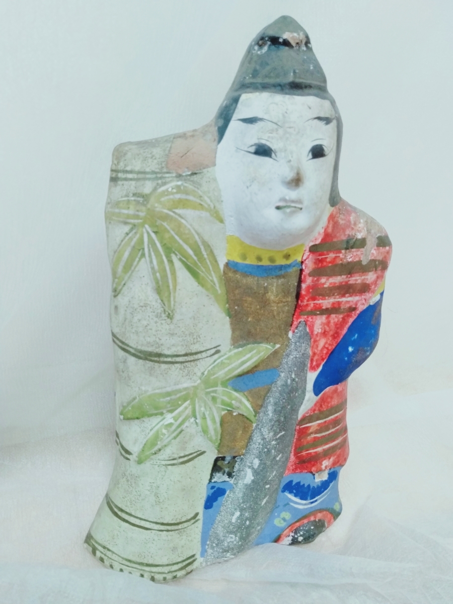 チ 竹に隠れる武士 土人形 欠けあり 30cm 日本人形 置物 190311