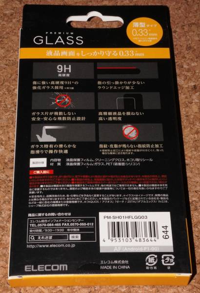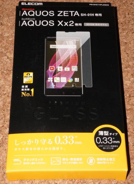 ELECOM AQUOS ZETA SH-01H / AQUOS Xx2 液晶保護リアルガラスフィルム 0.33mm 9H 新品・未開封です。