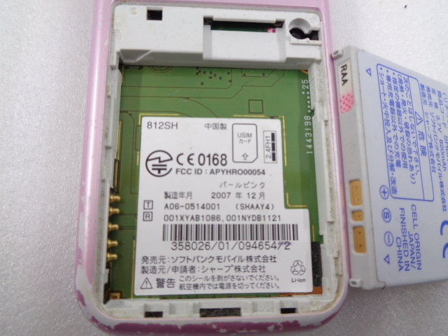 Softbank 携帯電話 812SH 利用制限○ パールピンク 中古