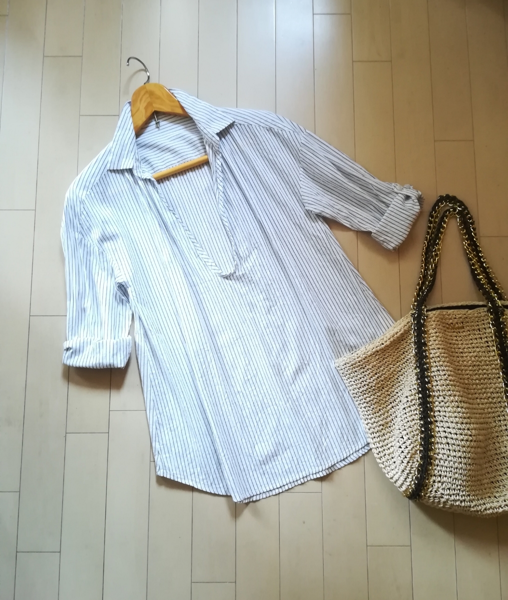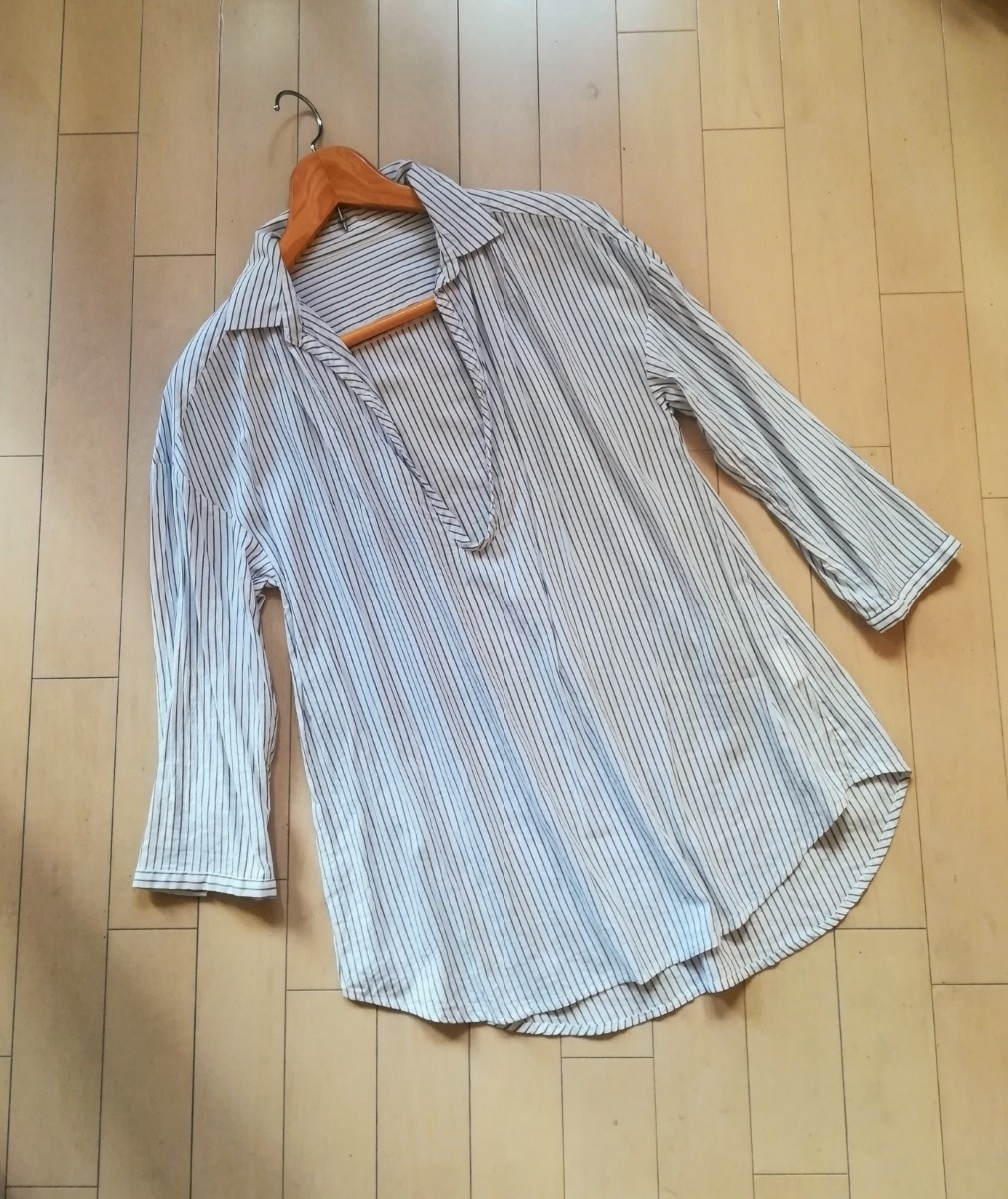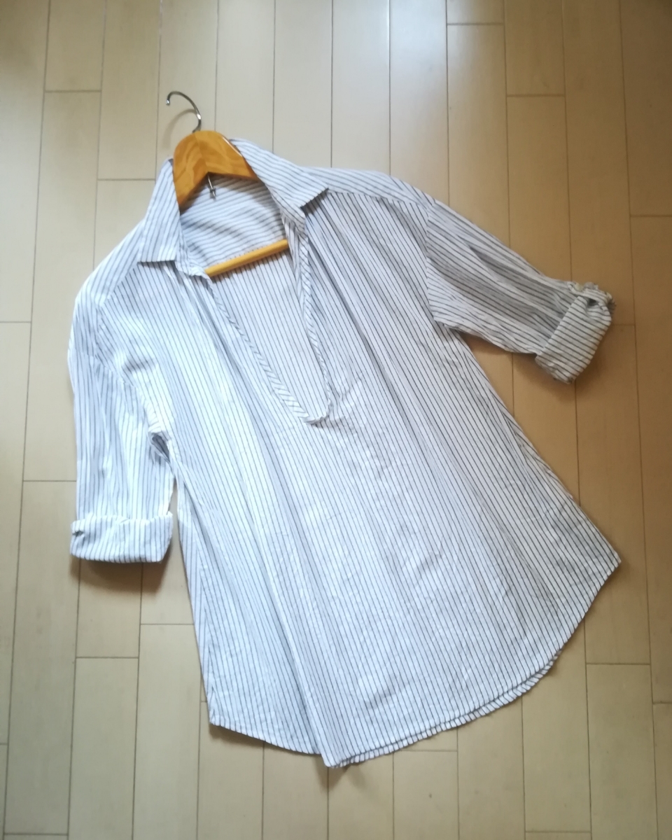 腰回りが隠れ、ローアップできる、とても着やすいシャツです。