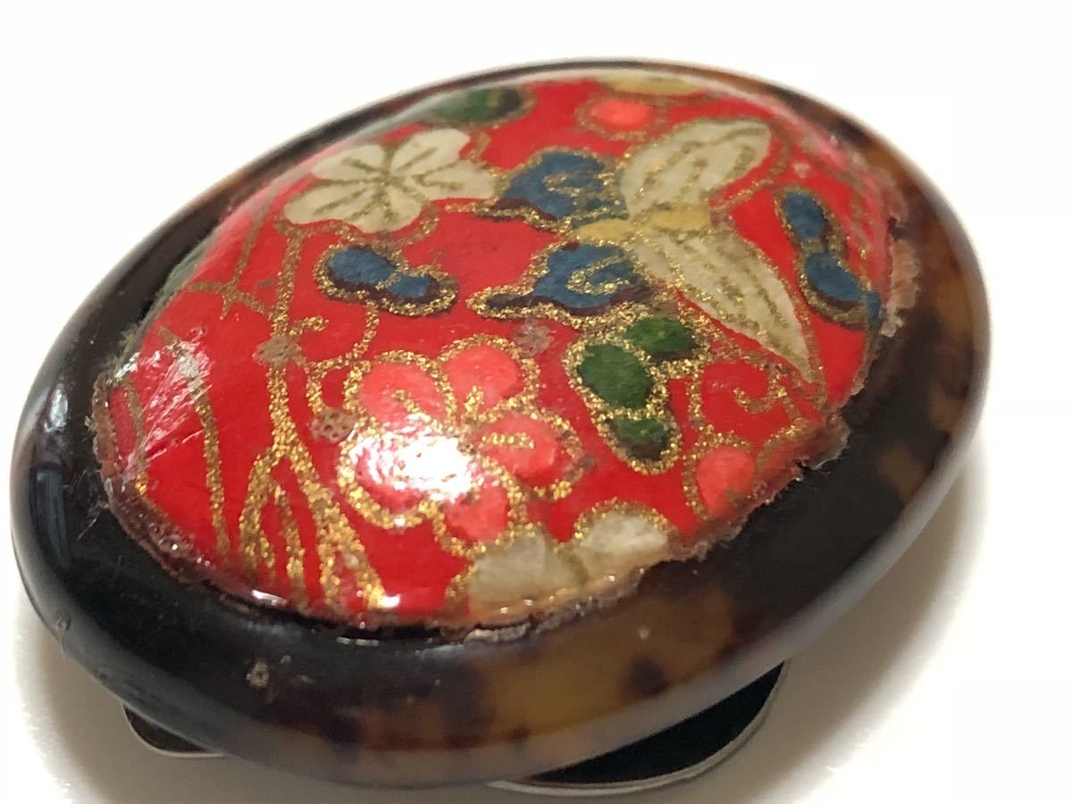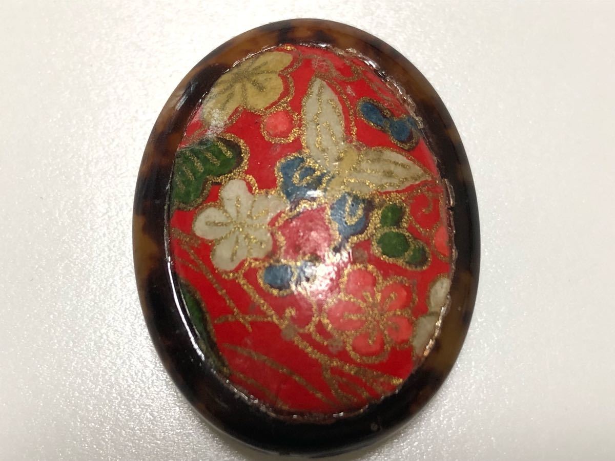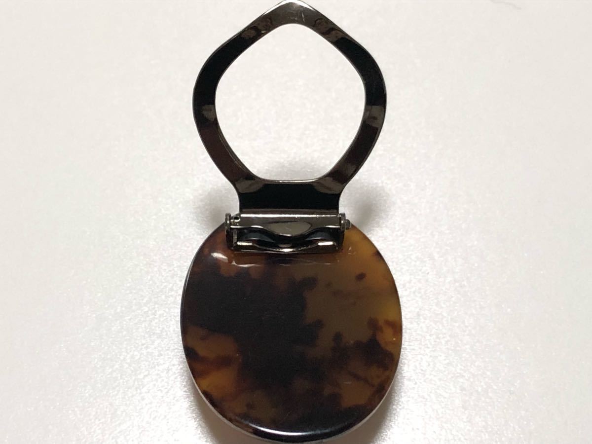 鼈甲風(樹脂)に仕上げた、花鳥文、オーバルデザインのスカーフ留めです。