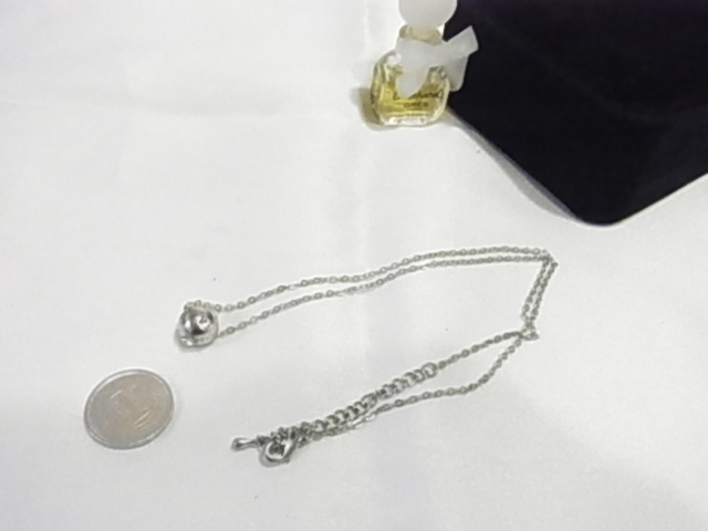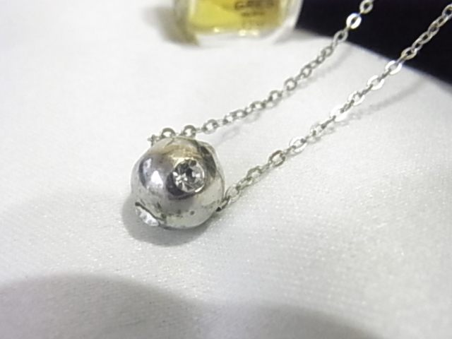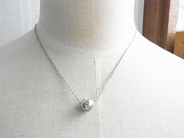 球型 円形 丸型 ボール型 輝くラインストーン付のシルバーカラー 銀色の キュートなネックレス◆