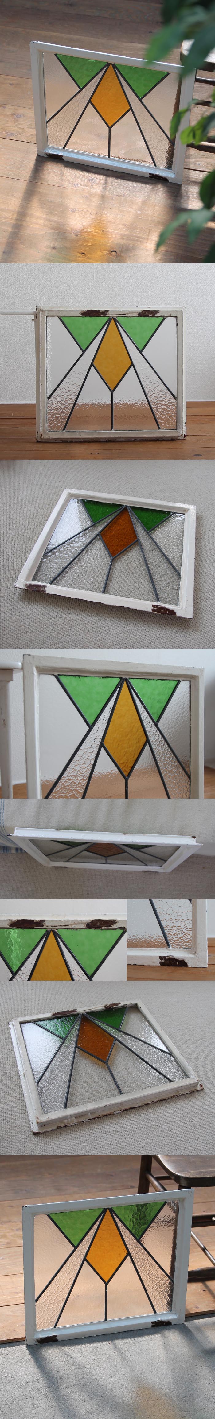 イギリス アンティーク ステンドグラス/鉄枠/扉/ガラス窓/採光/フレーム/窓枠【おしゃれな幾何学模様】N-470