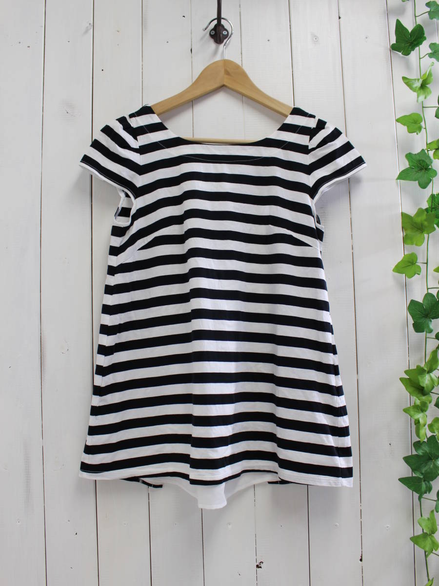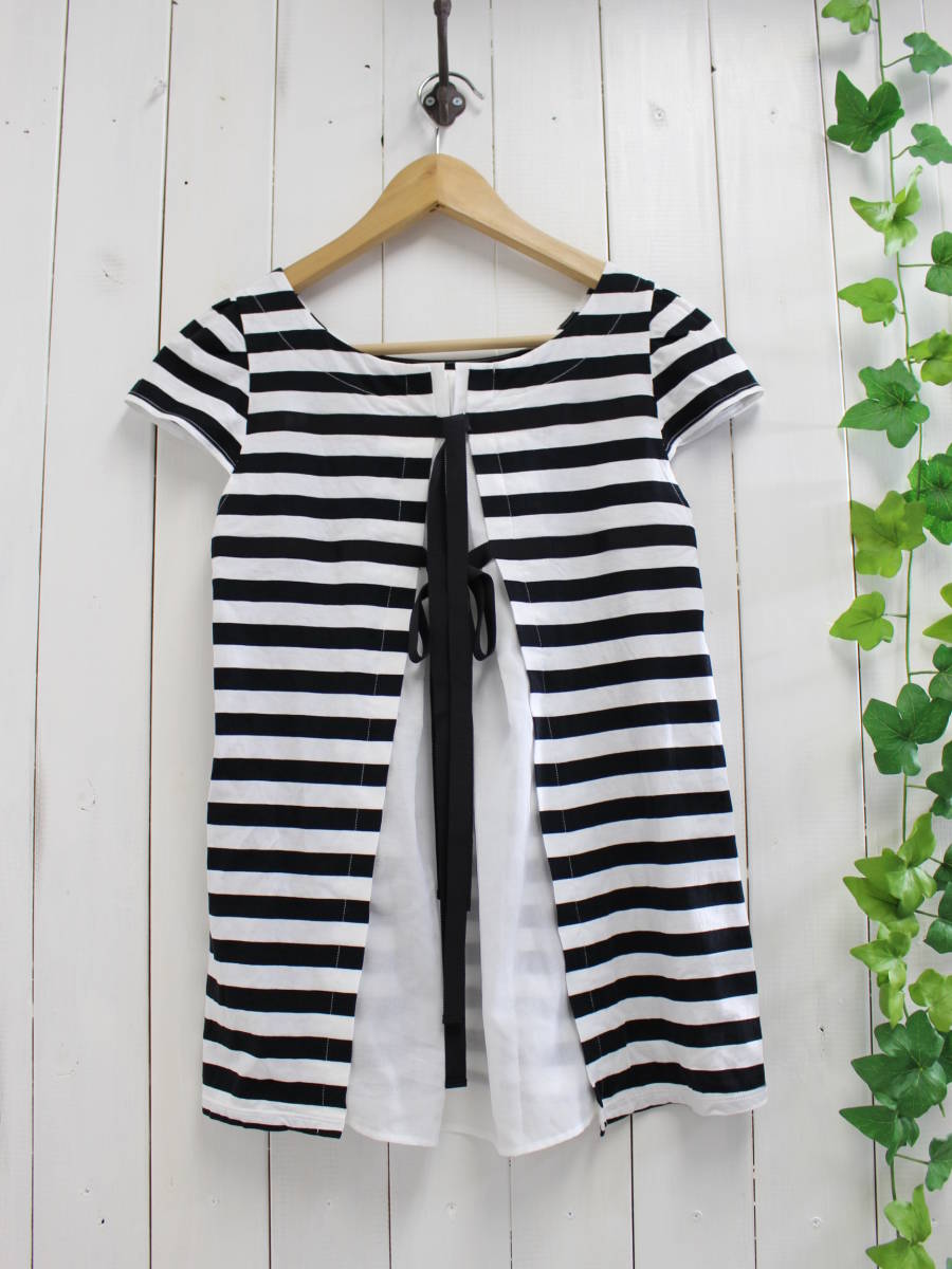 美品*ティアラ Tiara*背中リボン付きボーダーブラウス トップス ホワイト×ブラック【a161】