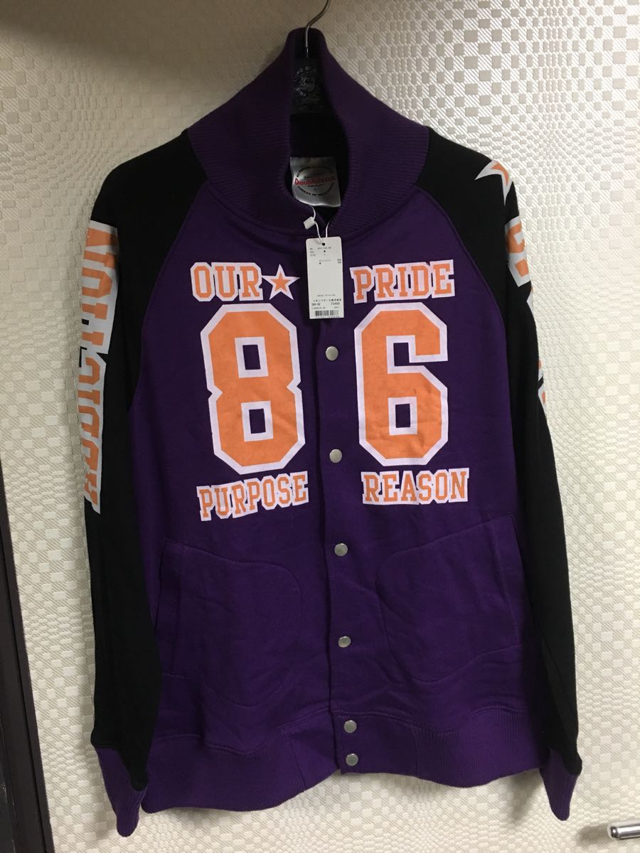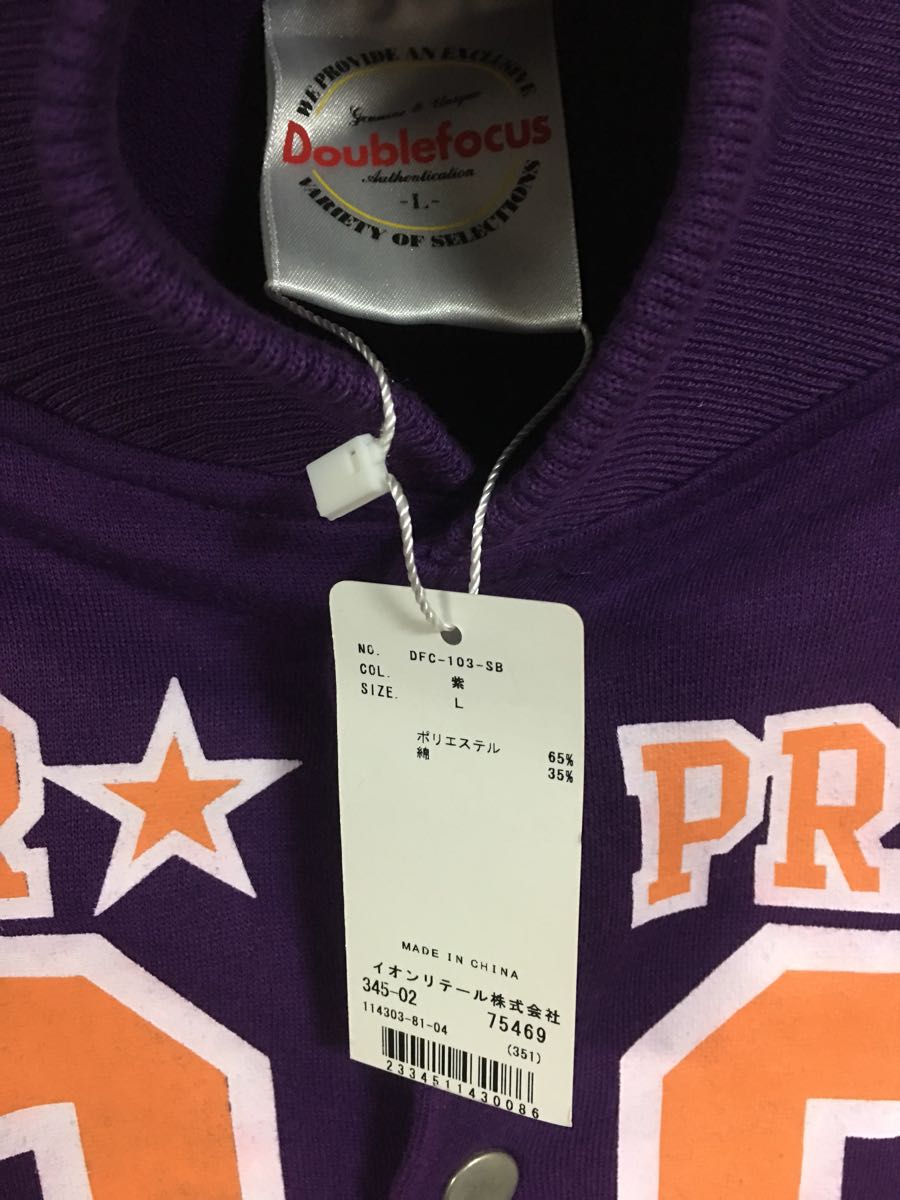 新品タグ付きで自宅保管していたトラックジャケットです。サイズは L表記で平置き脇下身幅54着丈67センチ位です。