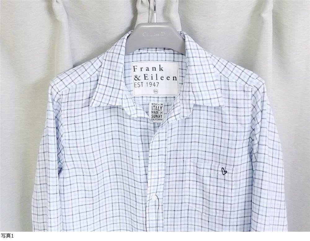 ◆Frank&Eileen フランク&アイリーン チェック リネン 麻 シャツ 白青チェック BARRY USA アメリカ製 希少ハート刺繍 送料無料 未使用 新品