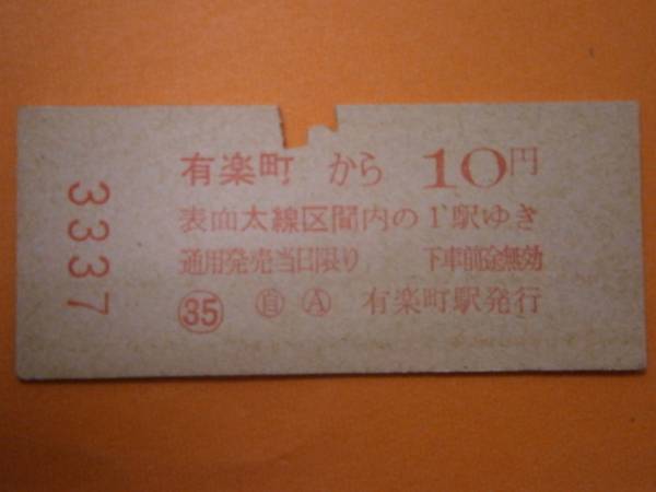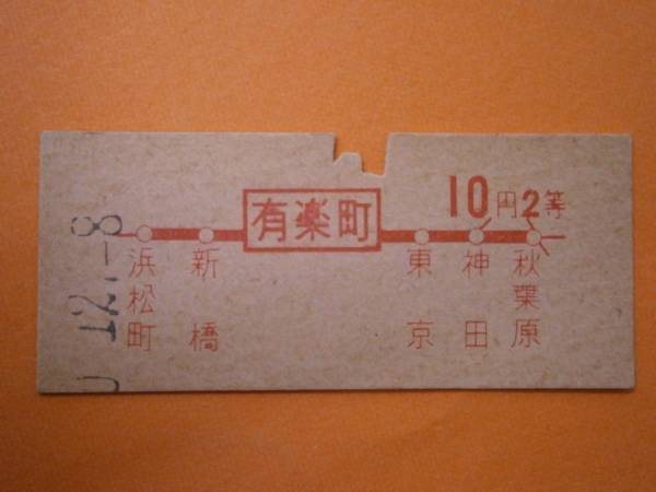 硬券●●有楽町から10円区間2等/?・12・8/3337