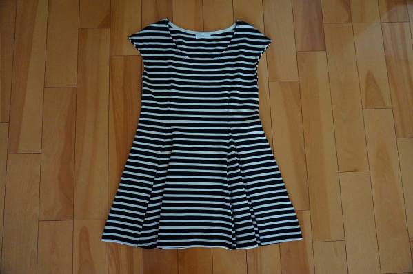 美品★hyphen worid gallery★白黒ワンピース★サイズF ボーダーワンピース 半袖 夏 ノースリーブ 袖なし マリン 109