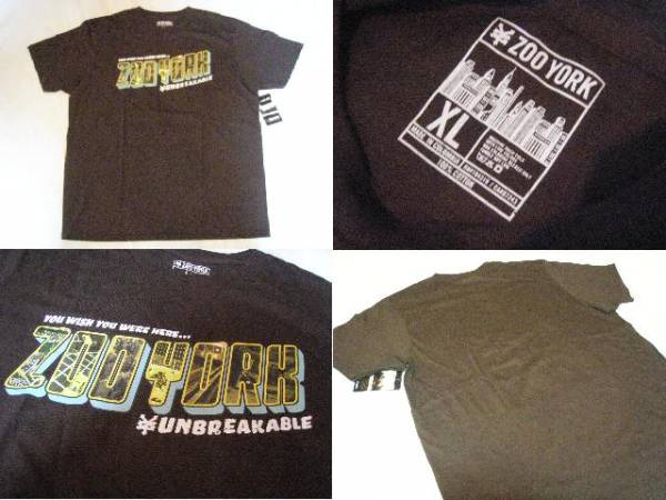 即決 NYボーダー系ZOOYORK街並みロゴTシャツ US XL(茶)新品
