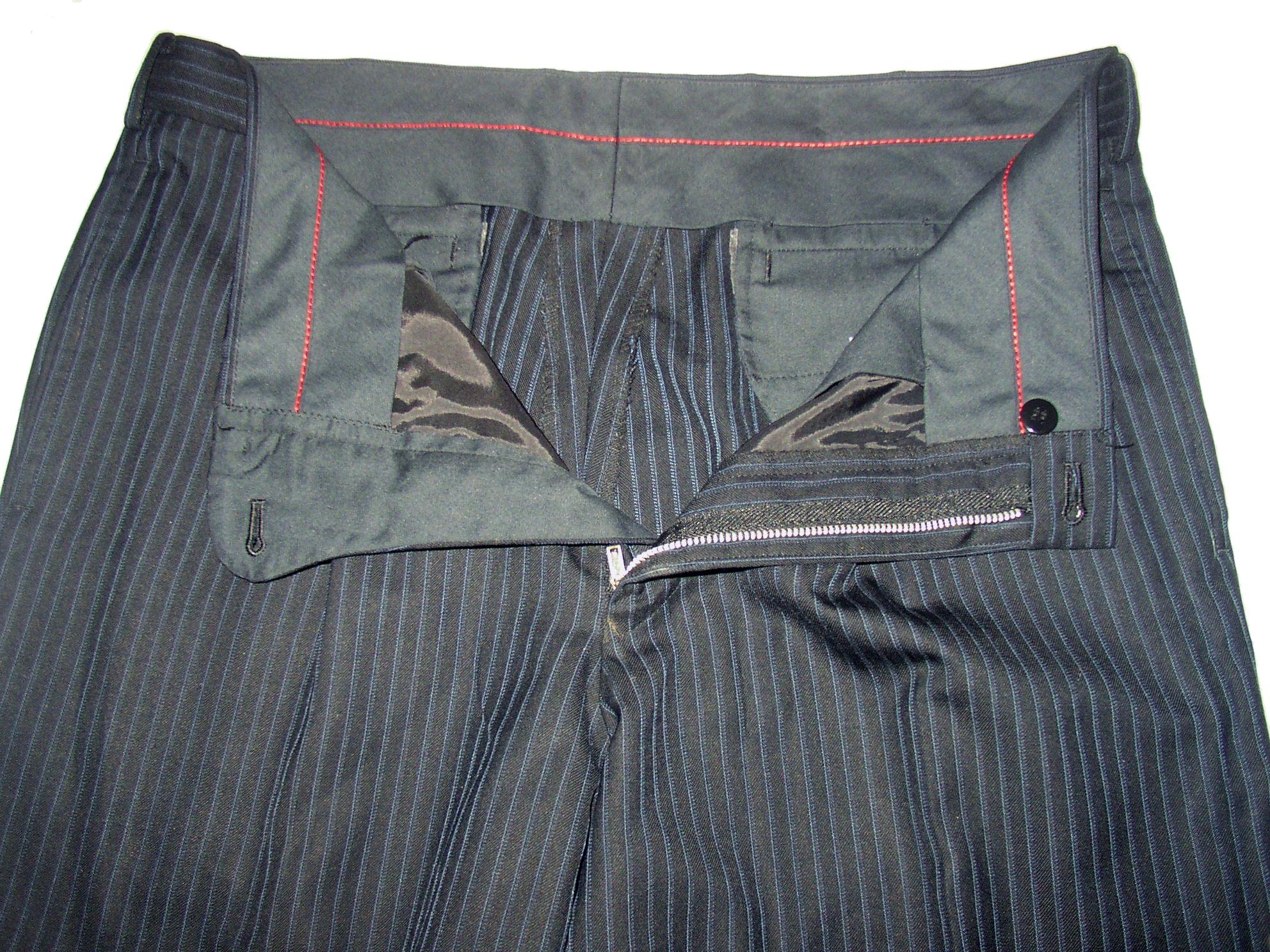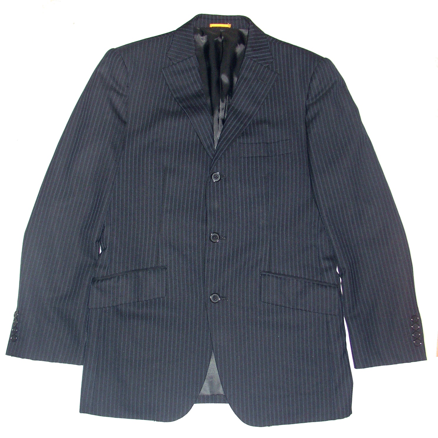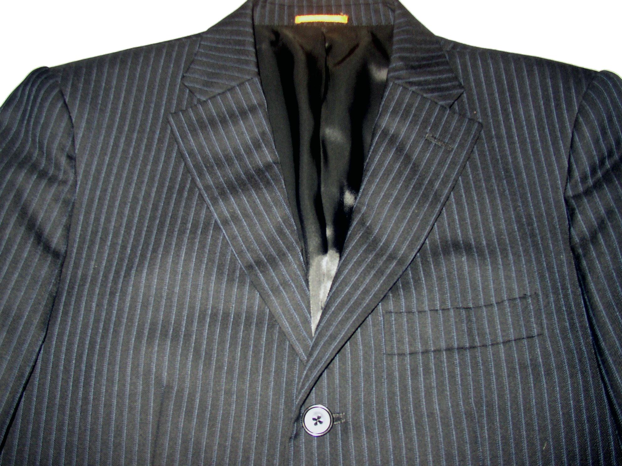 薄手の生地で、黒色に紺色系統のペンシルストライプが入ったお洒落なスーツです。