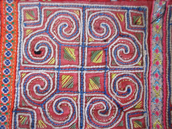 細密な小宇宙のような刺繍デザインが魅力のタイ・モン族のオールド刺繍布。